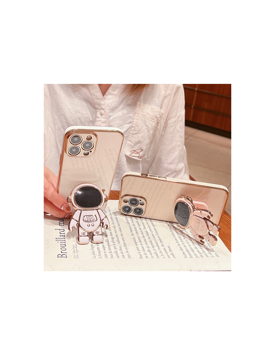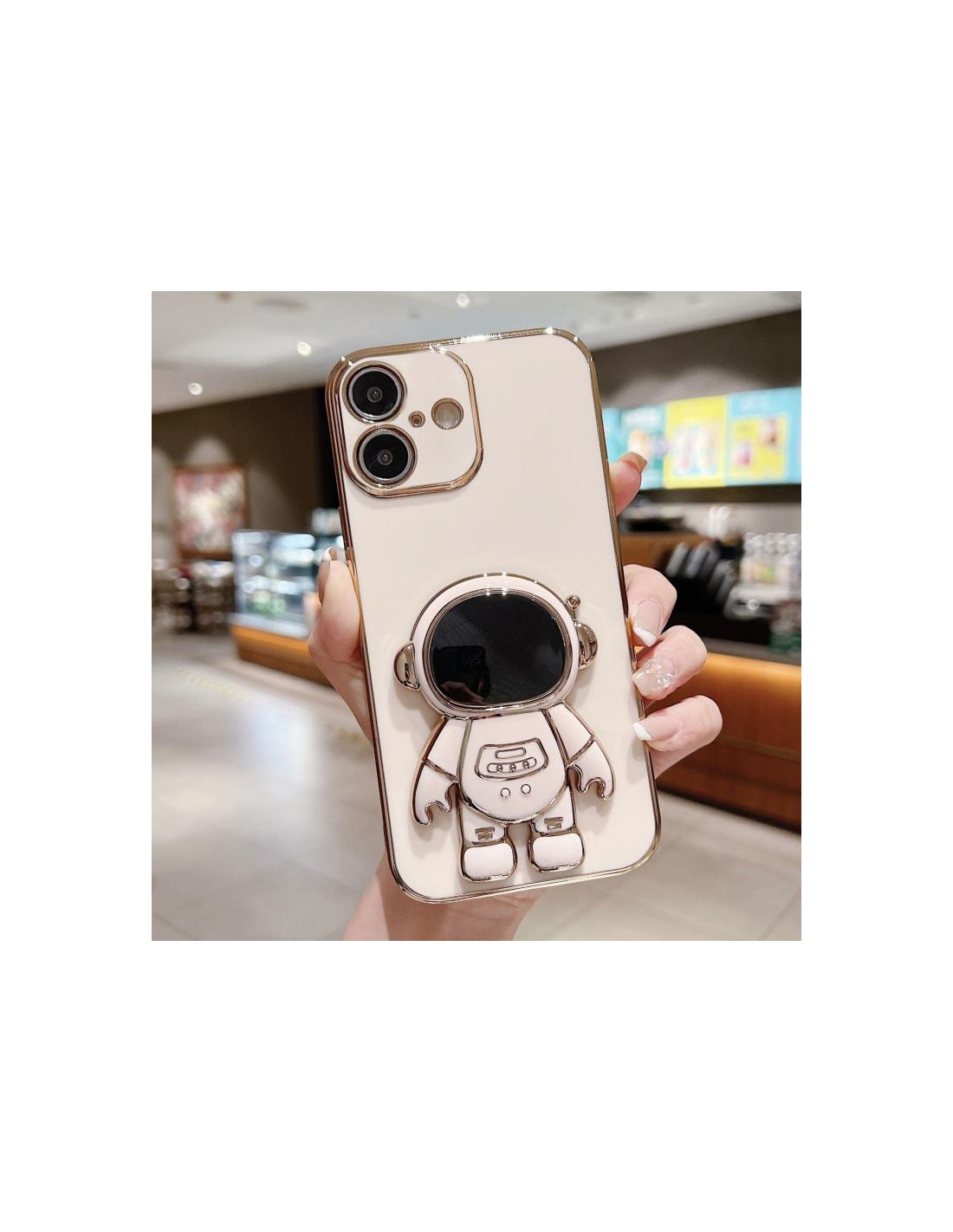 Cover iPhone 17 in PC con supporto integrato e design astronauta. Protezione elegante e pratica.