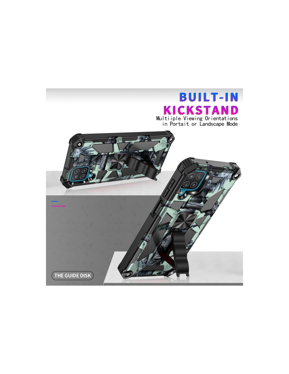 Proteggi il tuo Samsung Galaxy A12 con questa cover antiurto realizzata in TPU + PC, perfetta per chi cerca robustezza e stile. Il design mimetico in tonalità menta regala un look moderno e affascinante al tuo dispositivo.