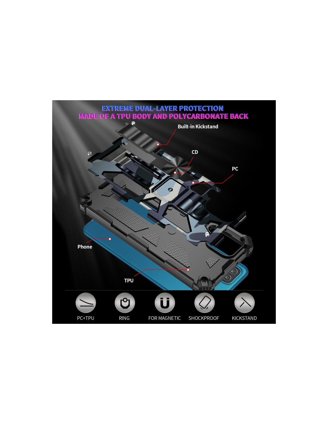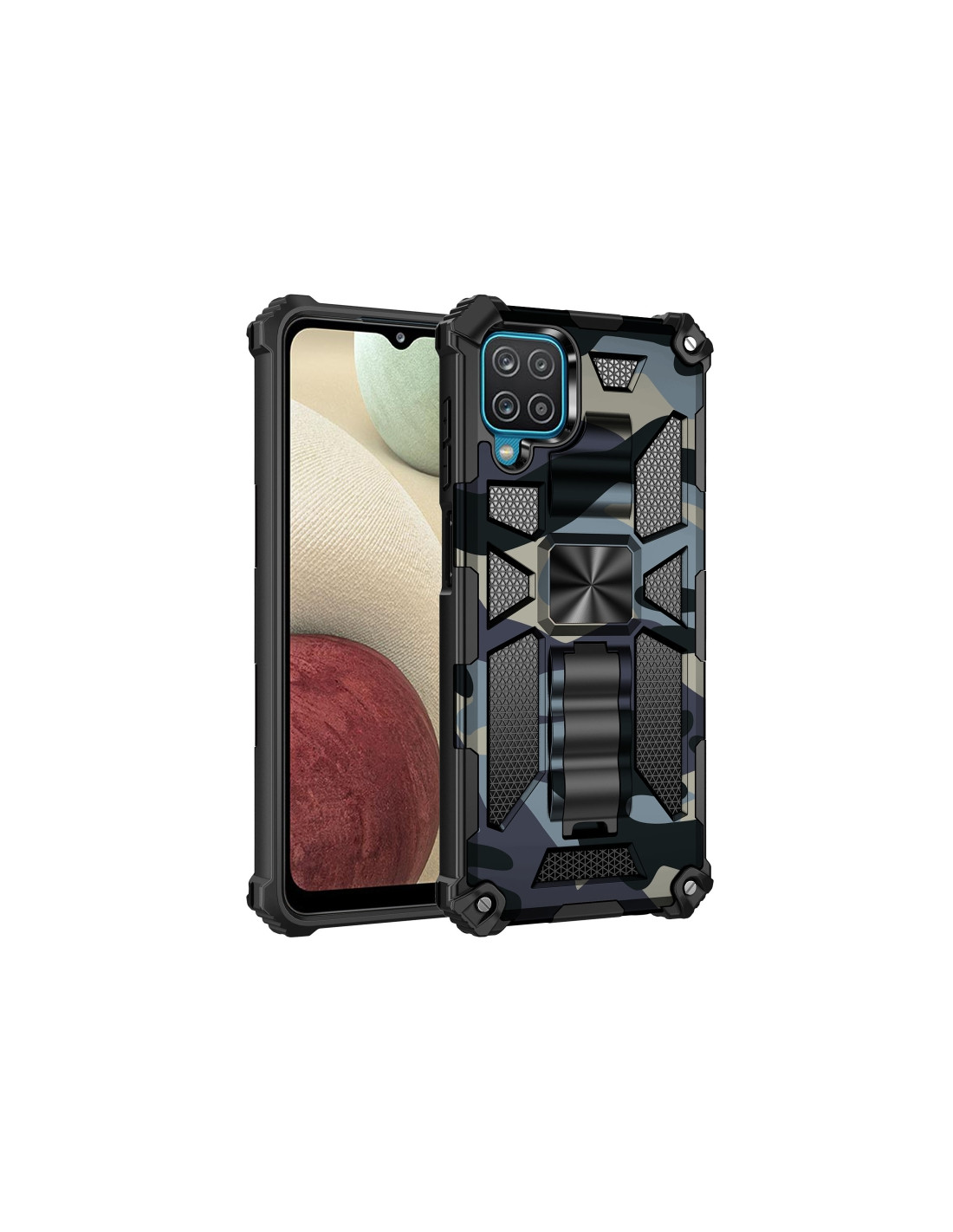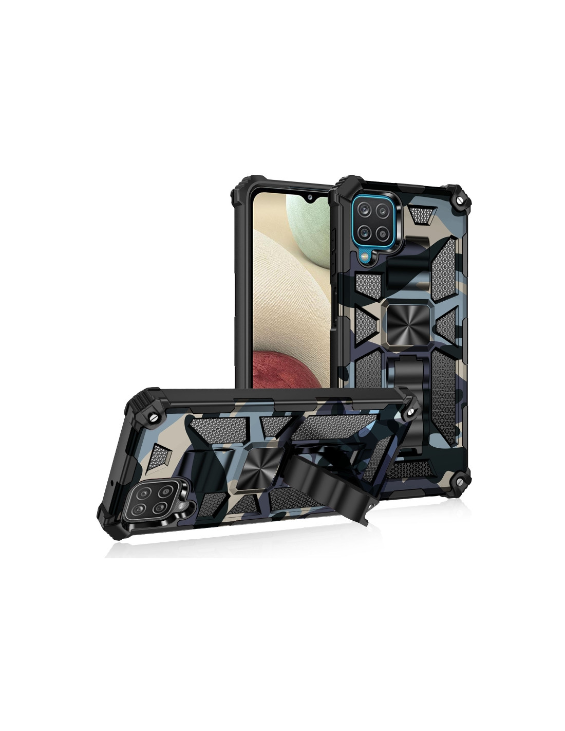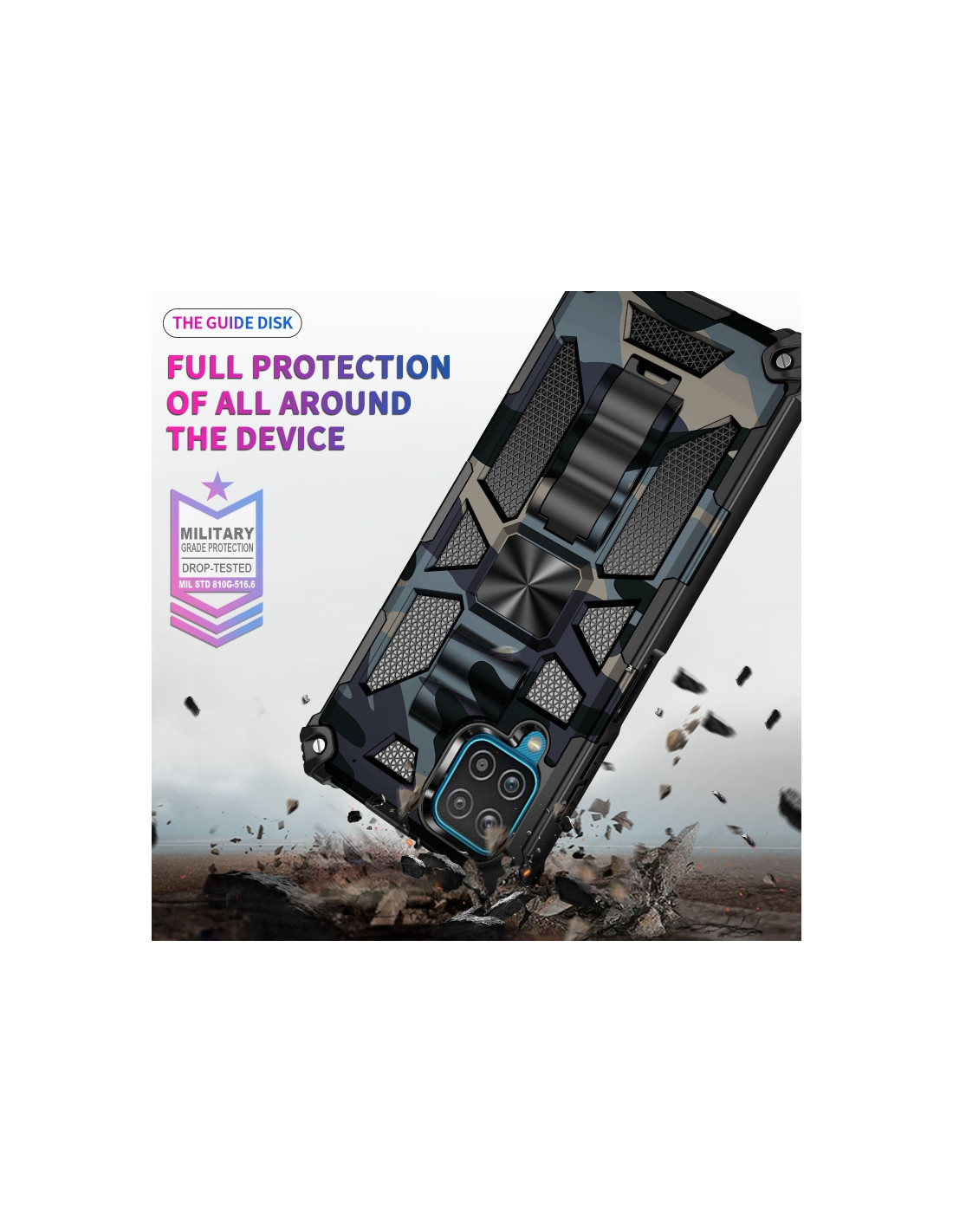Cover antiurto Galaxy A12 in TPU + PC con design mimetico e supporto integrato. Protezione totale in colore menta.