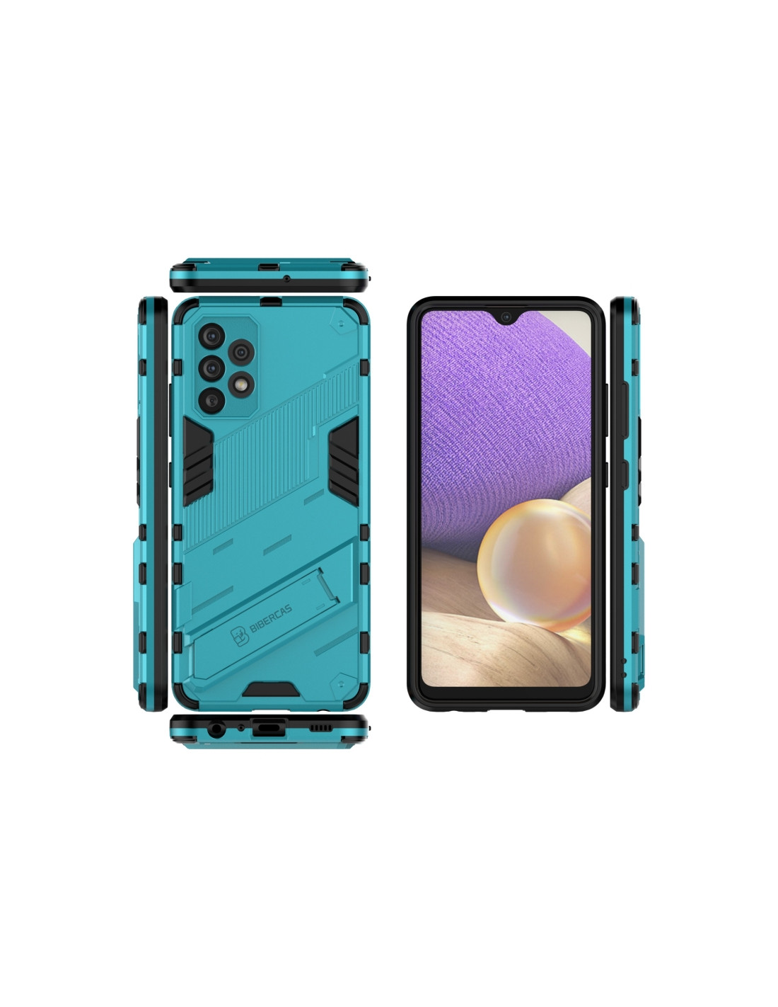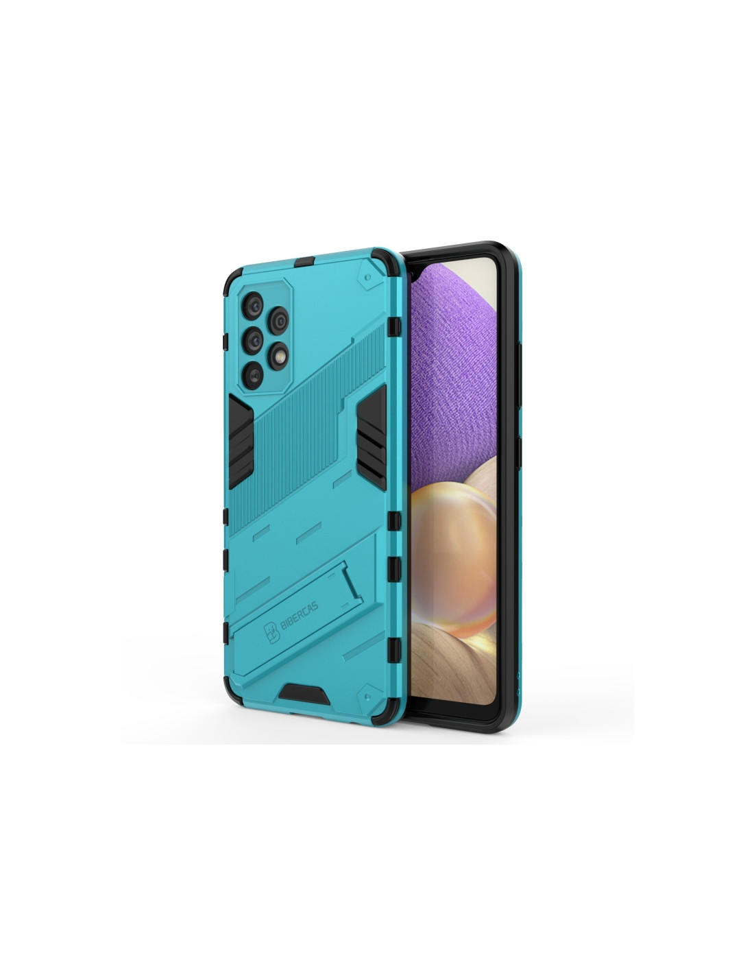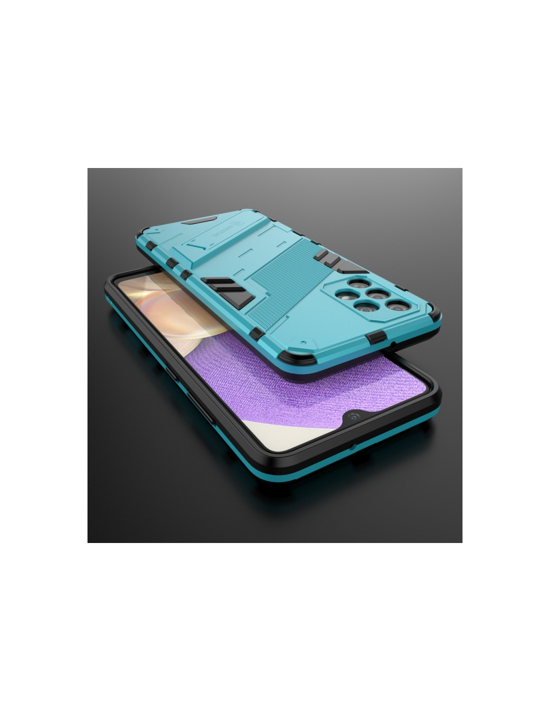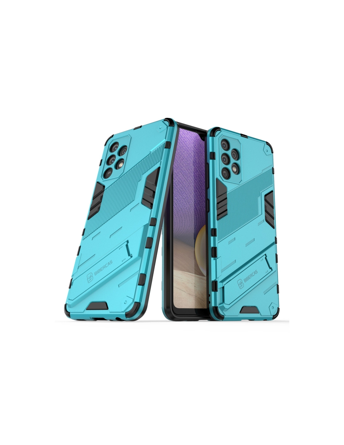 Cover antiurto Galaxy A32 4G in PC + TPU con design Punk Armor e supporto invisibile. Protezione totale in blu.