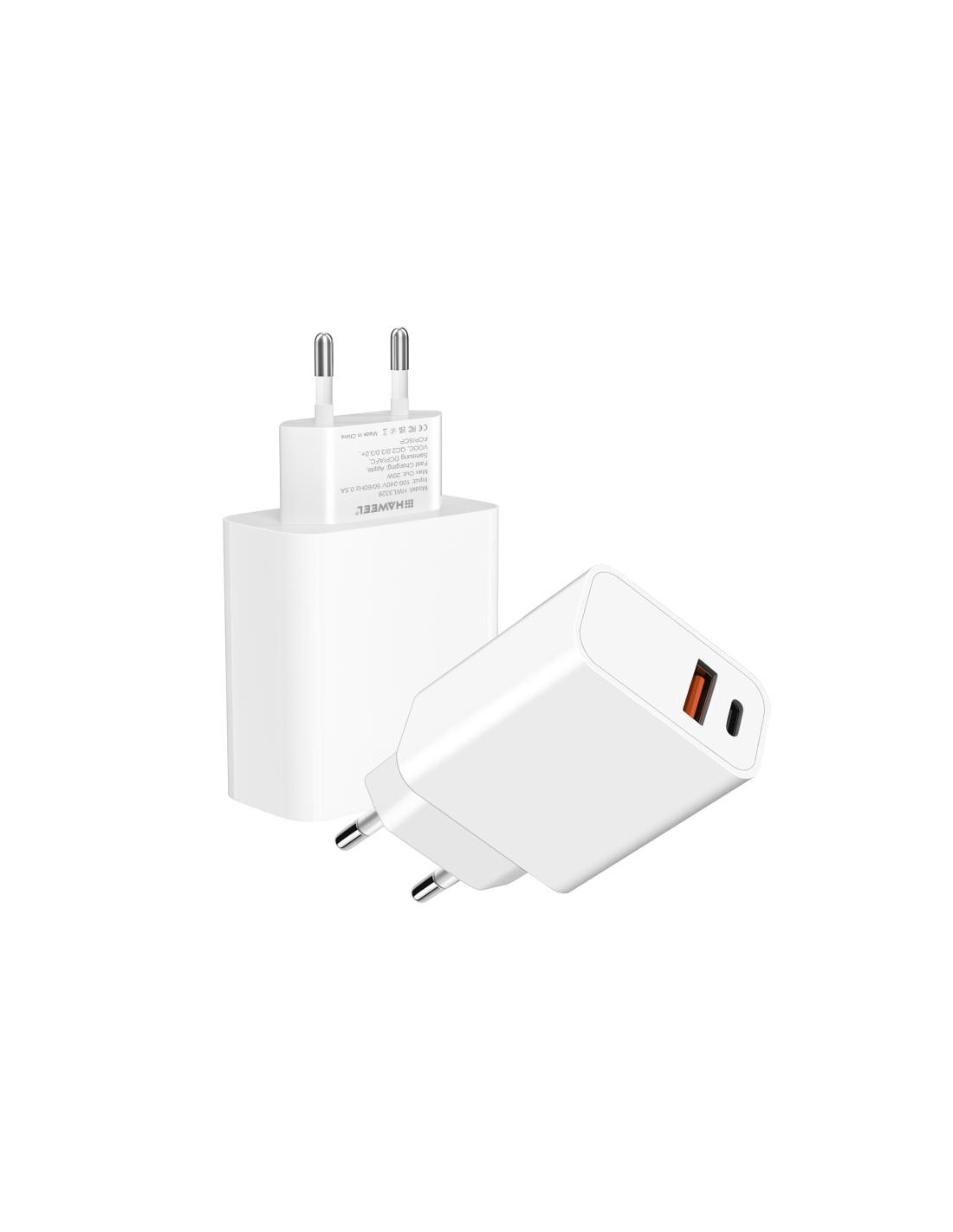 Caricabatterie veloce HAWEEL 20W con doppia porta USB per ricaricare due dispositivi contemporaneamente. Spina EU.
