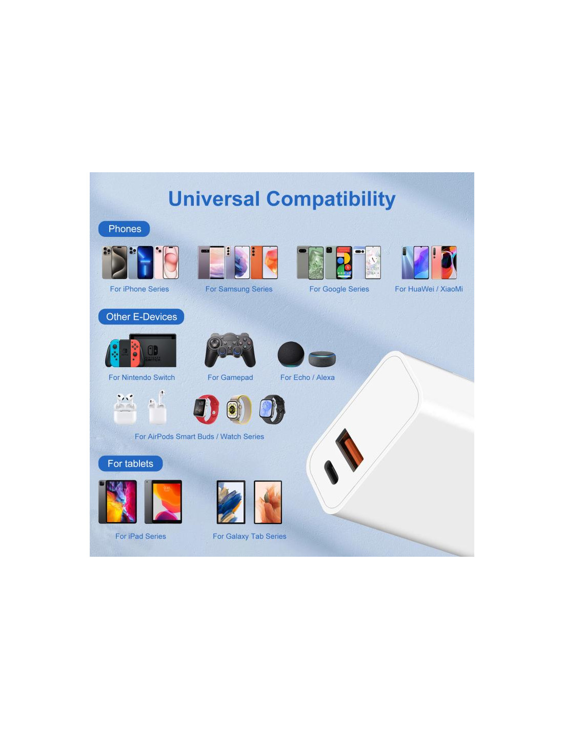 Il caricabatterie HAWEEL 20W Dual-Port Fast Charger è la soluzione ideale per chi ha sempre fretta. Grazie alle due porte USB integrate, potrai ricaricare contemporaneamente due smartphone o dispositivi, dimezzando i tempi di attesa.