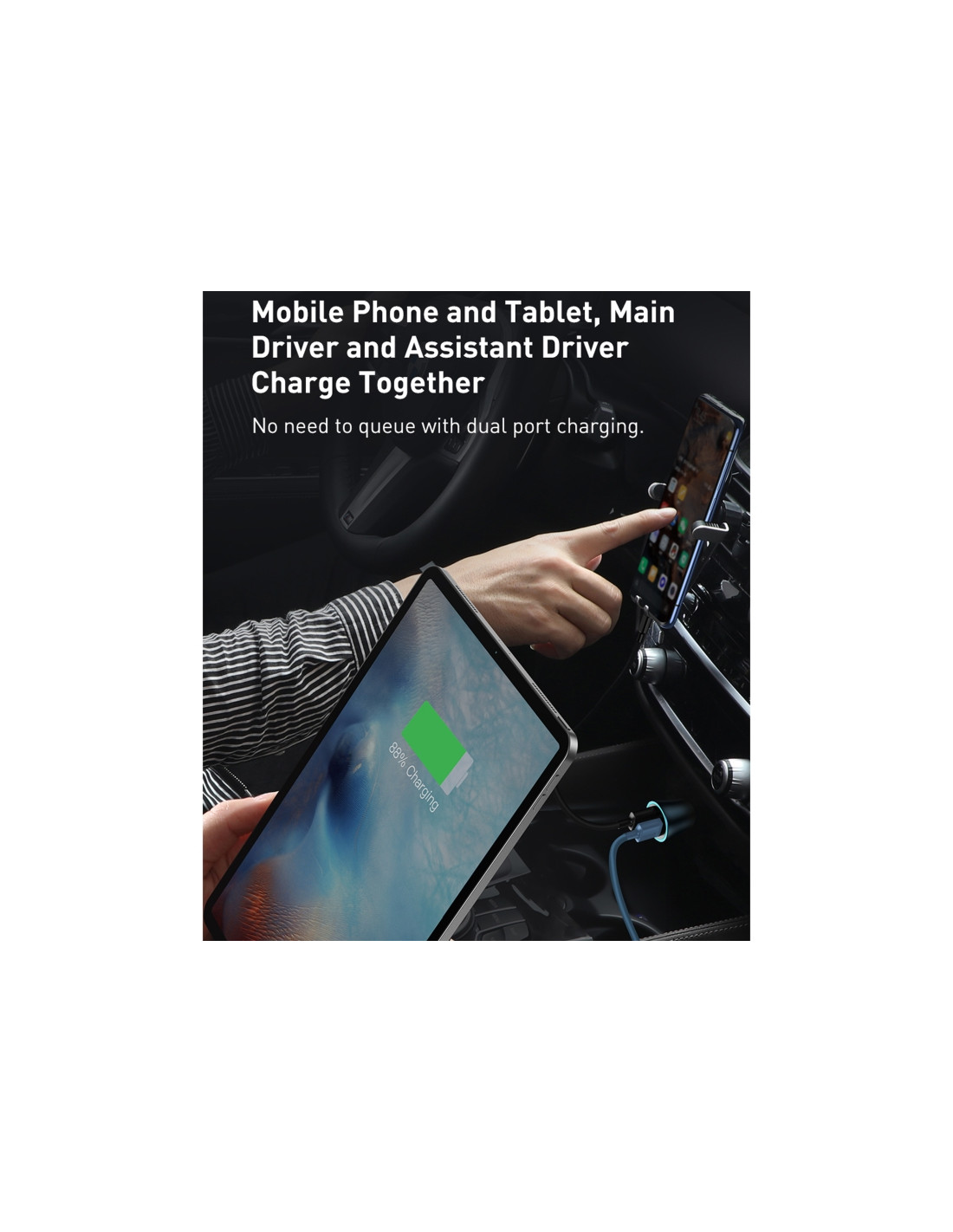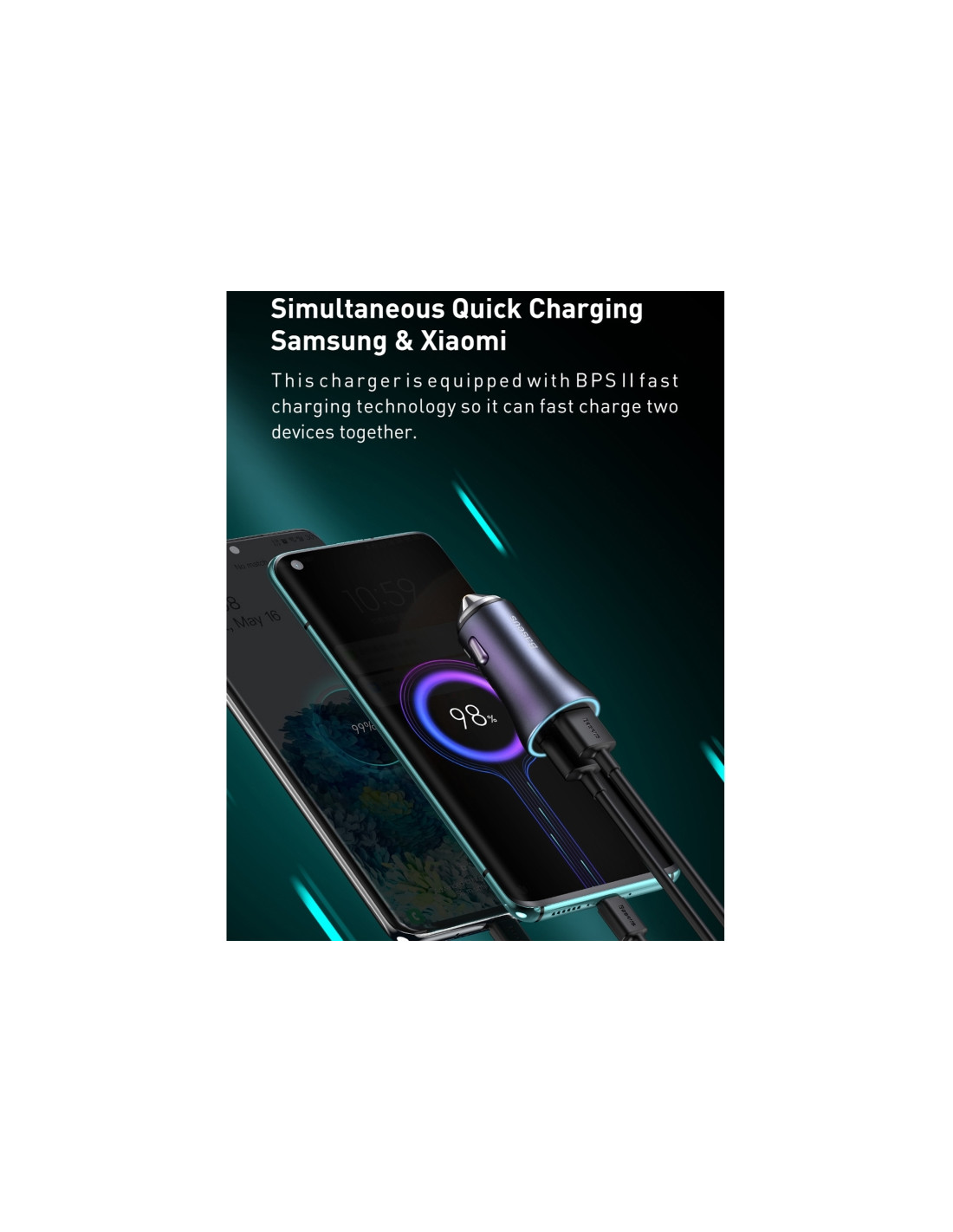 Il caricabatterie auto Baseus è la soluzione perfetta per ricaricare il tuo smartphone durante i viaggi. Con doppi connettori USB e Type-C, consente di caricare due dispositivi contemporaneamente.