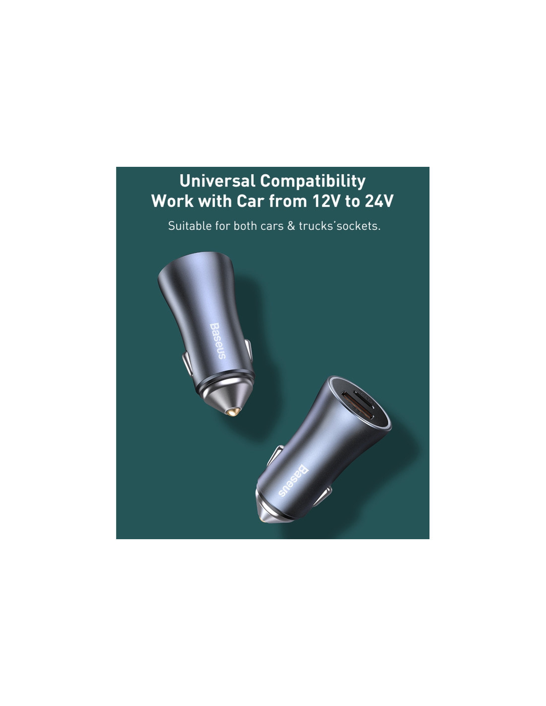 Caricabatterie Auto Baseus USB Type-C Quick Charging Grigio