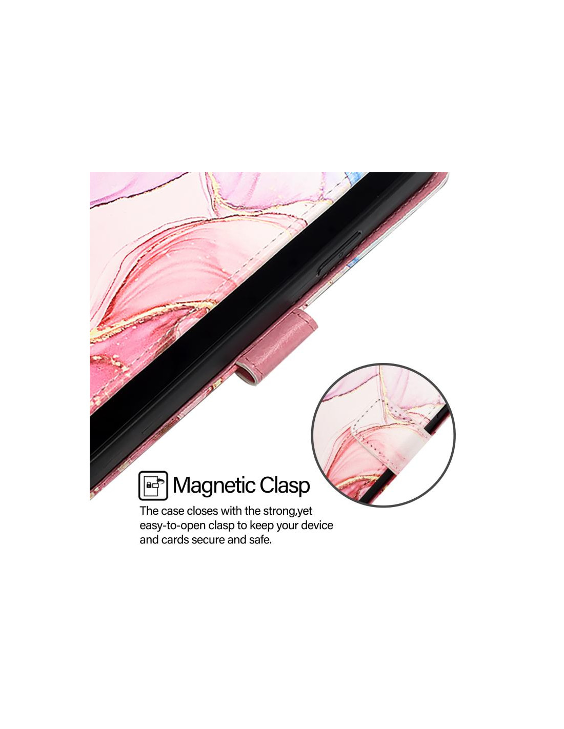 Proteggi il tuo iPhone Air con stile grazie a questa esclusiva cover a libro in pelle con elegante fantasia marmo. Il design sofisticato e la finitura in oro rosa la rendono perfetta per chi cerca un accessorio che unisce protezione e bellezza estetica.