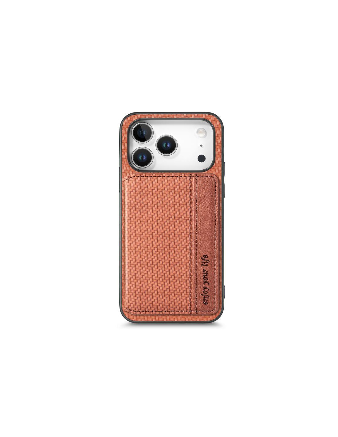 La cover a libro per iPhone 17 Pro combina stile sofisticato e funzionalità intelligente. Realizzata in fibra di carbonio marrone, offre un design elegante e robusto che protegge il tuo dispositivo con classe.