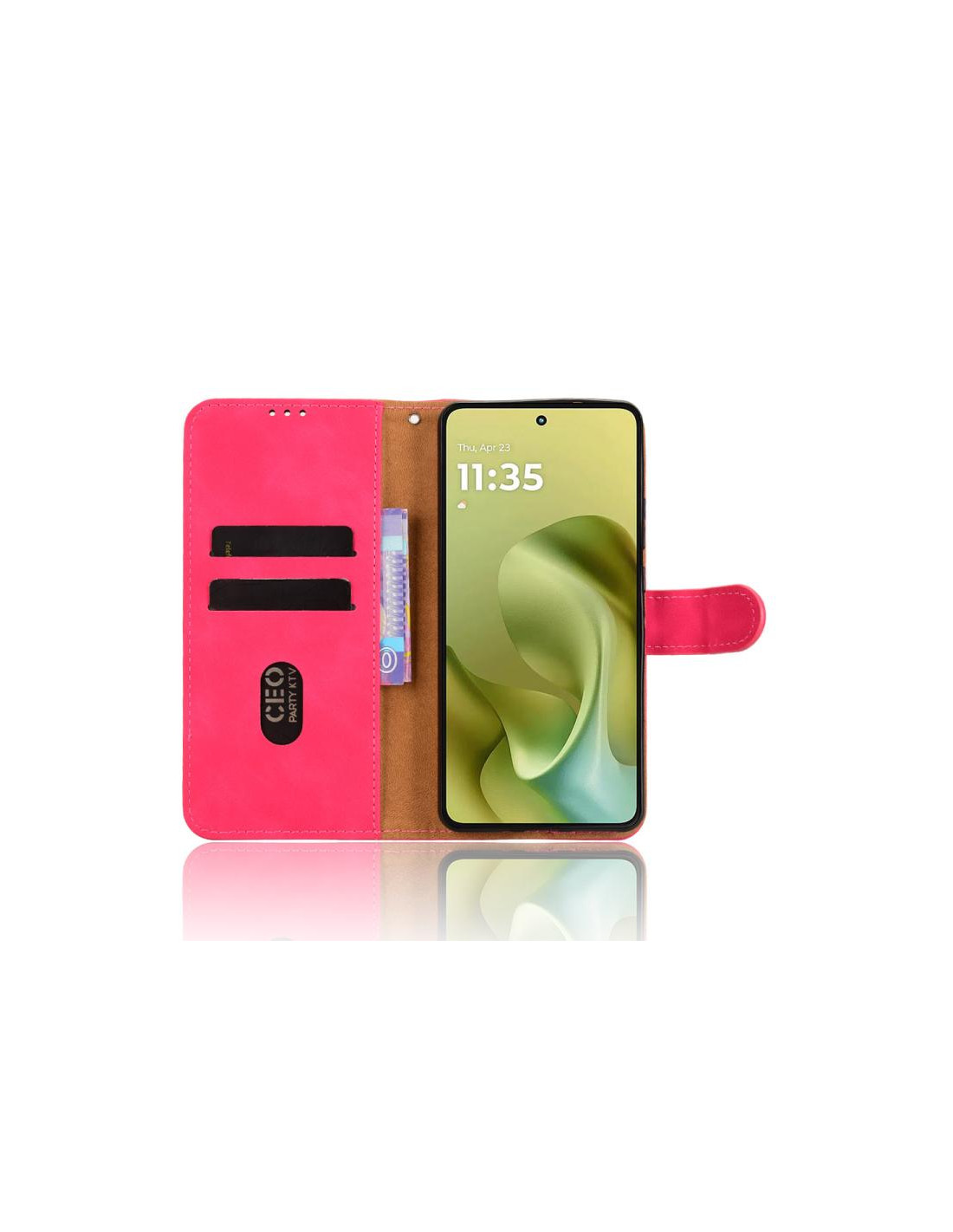 Cover a libro in pelle per Moto G86 con chiusura magnetica. Protezione totale e design elegante in rosa.