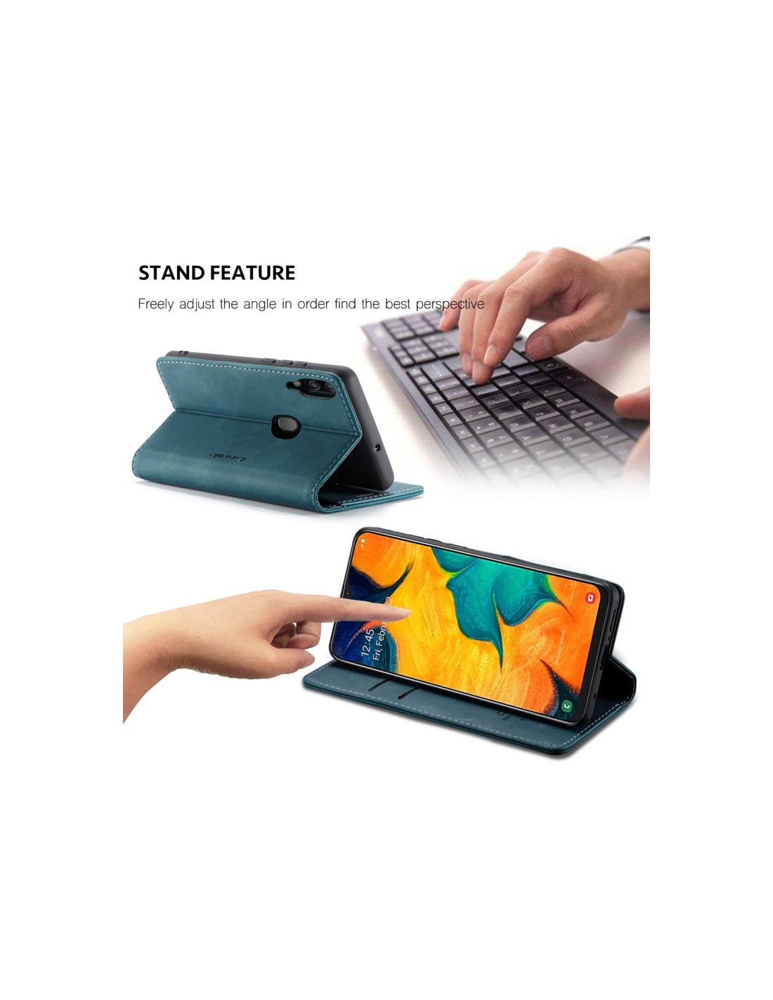 Cover a libro in pelle per Galaxy A40 con scomparti per carte e supporto integrato. Design retrò elegante.
