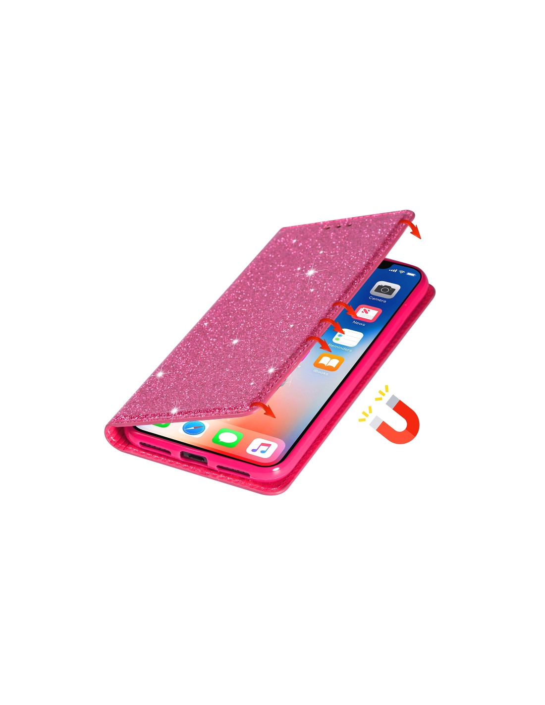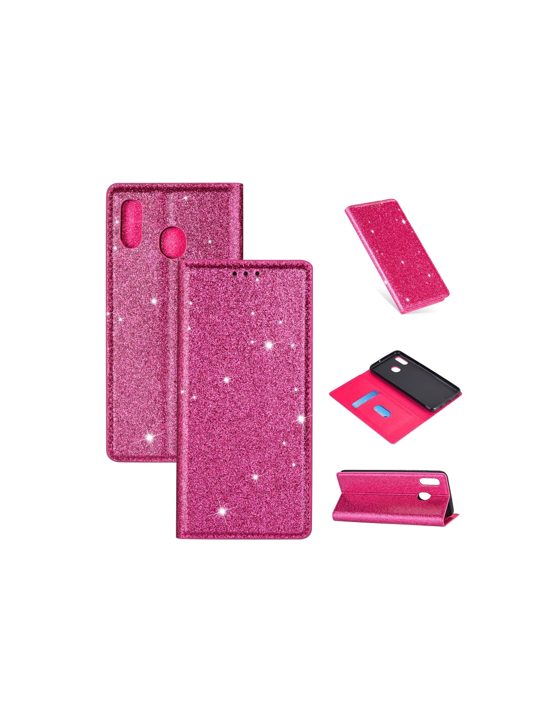 Proteggere il tuo Samsung Galaxy A40 con stile è ora possibile con questa elegante cover a libro in pelle glitterata. Realizzata in materiale PU leather di qualità, offre una protezione completa dello schermo e del retro del dispositivo.