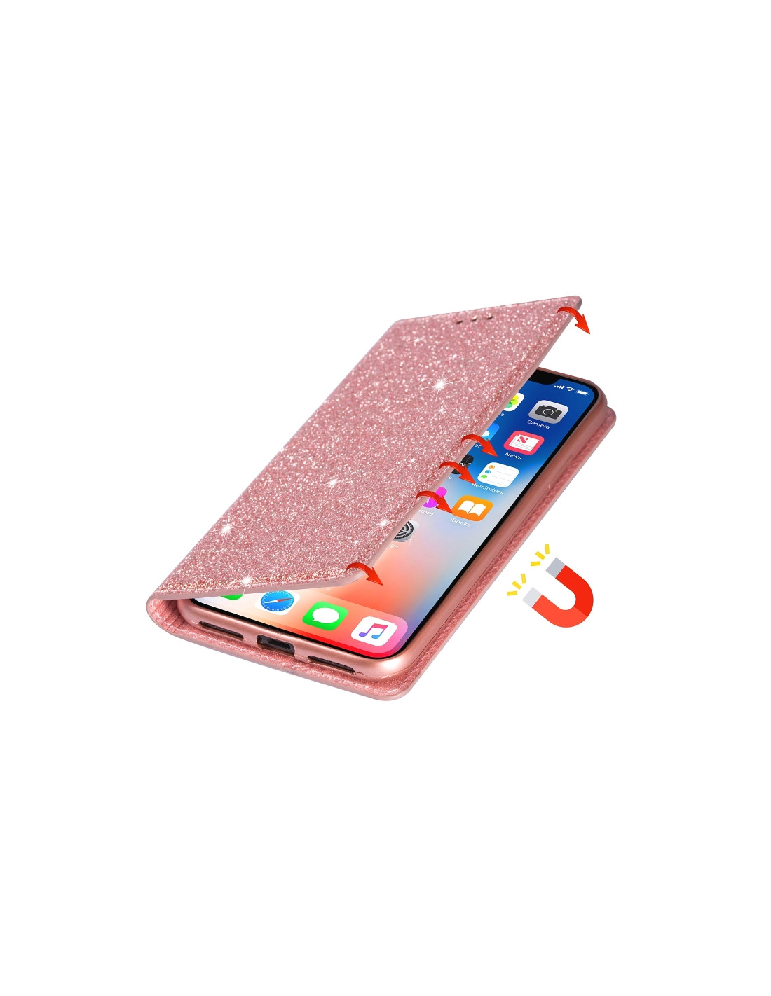 Cover Galaxy A40 Pelle Glitterato con Magnetico Rose Oro