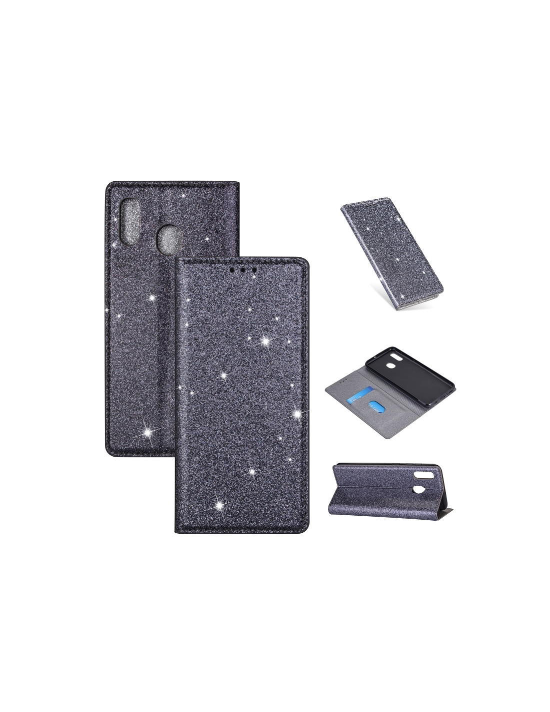 Proteggi il tuo Galaxy A20e con stile grazie a questa elegante cover a libro in pelle PU glitterata. Il design ultra sottile mantiene il telefono leggero e maneggevole, mentre la chiusura magnetica garantisce una protezione sicura e affidabile durante l'uso quotidiano.