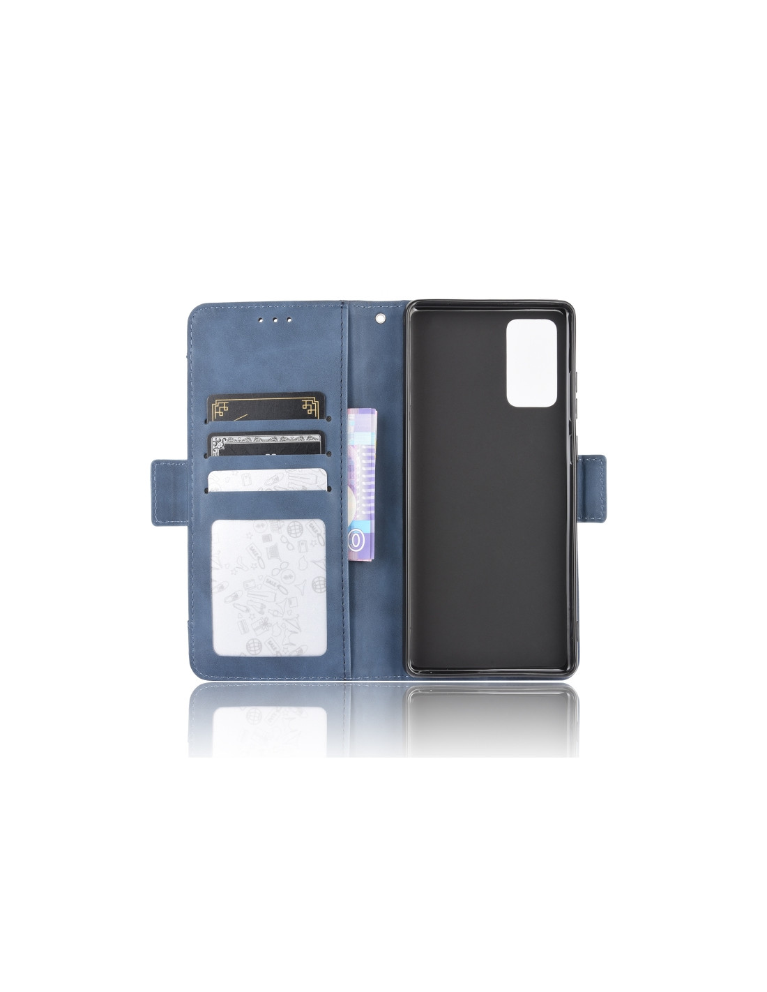 Cover portafoglio per Galaxy S20 FE in pelle con texture effetto vitello e scompartimenti per carte.