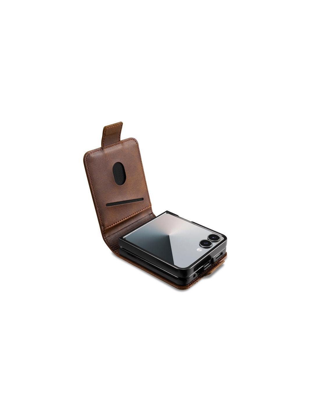 La cover a libro per Galaxy Z Flip7 combina eleganza e funzionalità grazie al materiale in pelle magnetica di qualità superiore. La texture vitello dona un aspetto sofisticato e una piacevole sensazione al tatto, mentre il meccanismo magnetico garantisce una chiusura sicura e stabile durante l'uso quotidiano.