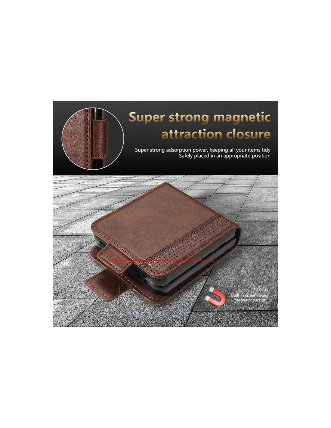Protezione premium con pelle magnetica texture e design a libro per Galaxy Z Flip7.