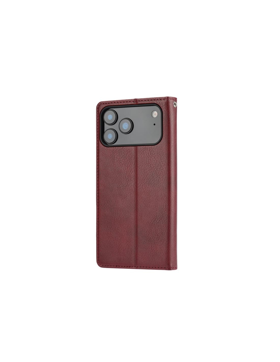 Cover a libro in pelle per iPhone 17 Pro Max con texture lambskin e protezione completa.