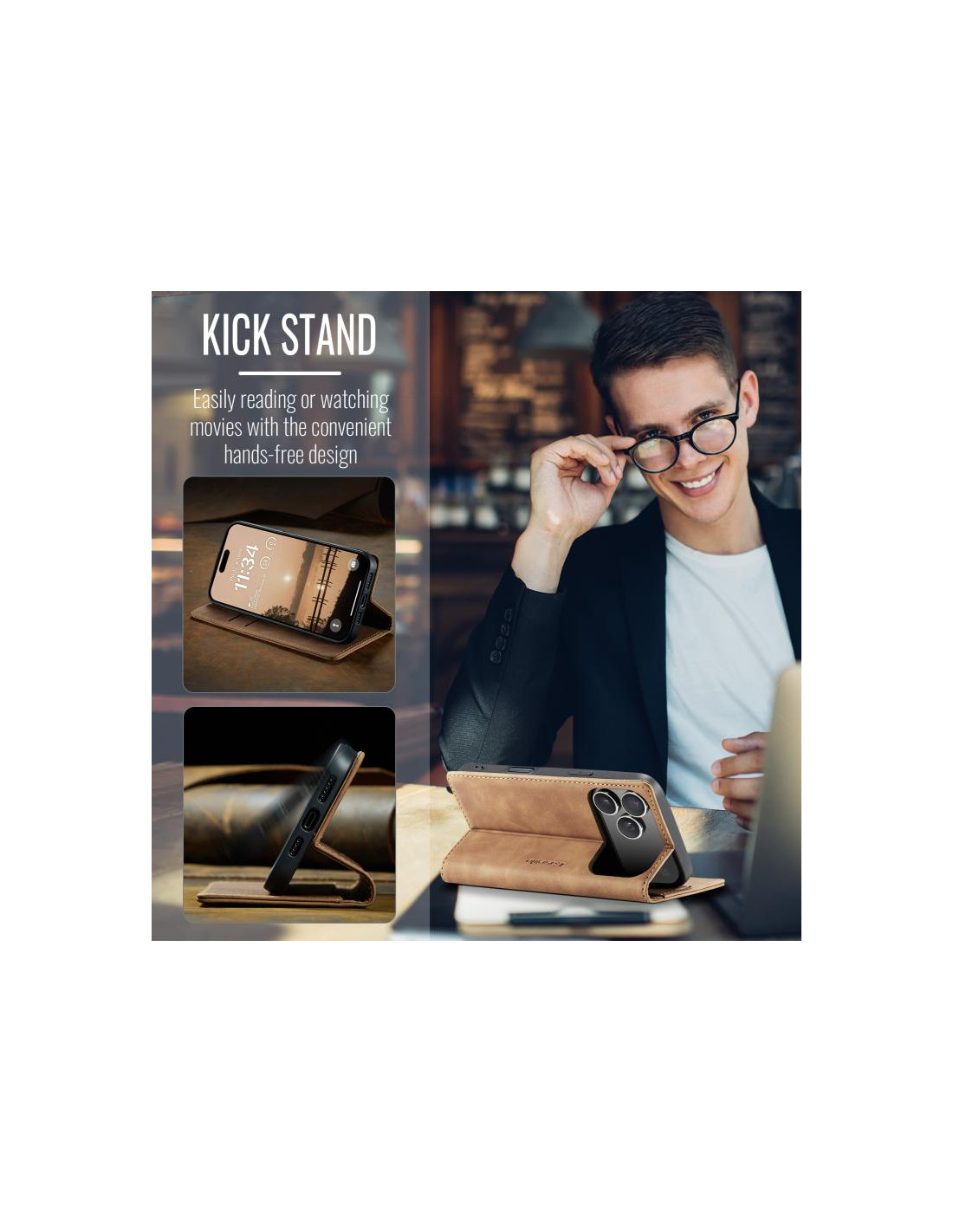 Cover iPhone 17 Pro Pelle Multifunzionale a Libro Marrone