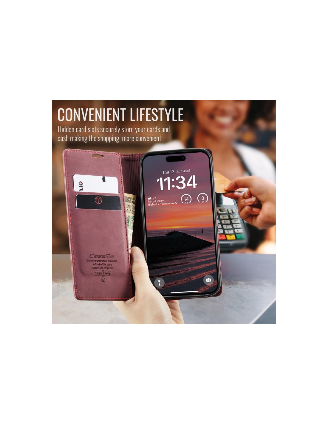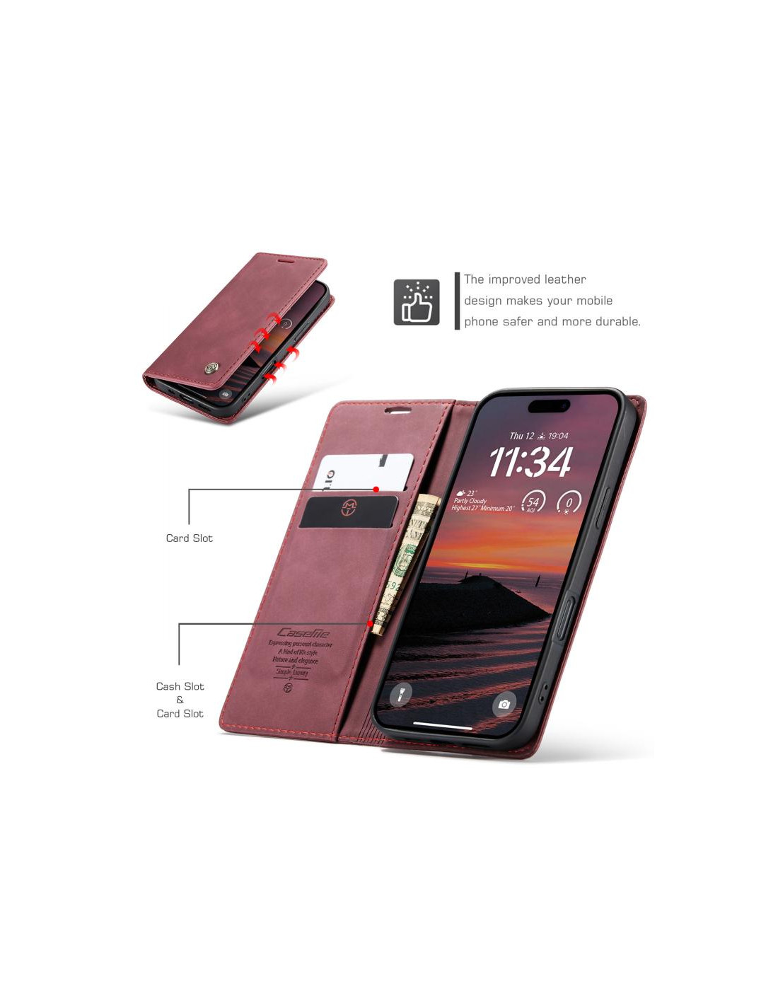 La cover CaseMe 013 per iPhone 17 Pro è una soluzione elegante e funzionale realizzata in pelle di qualità. Questo modello a libro offre protezione totale grazie al rivestimento in pelle pregiata e al design flip che avvolge completamente il dispositivo.