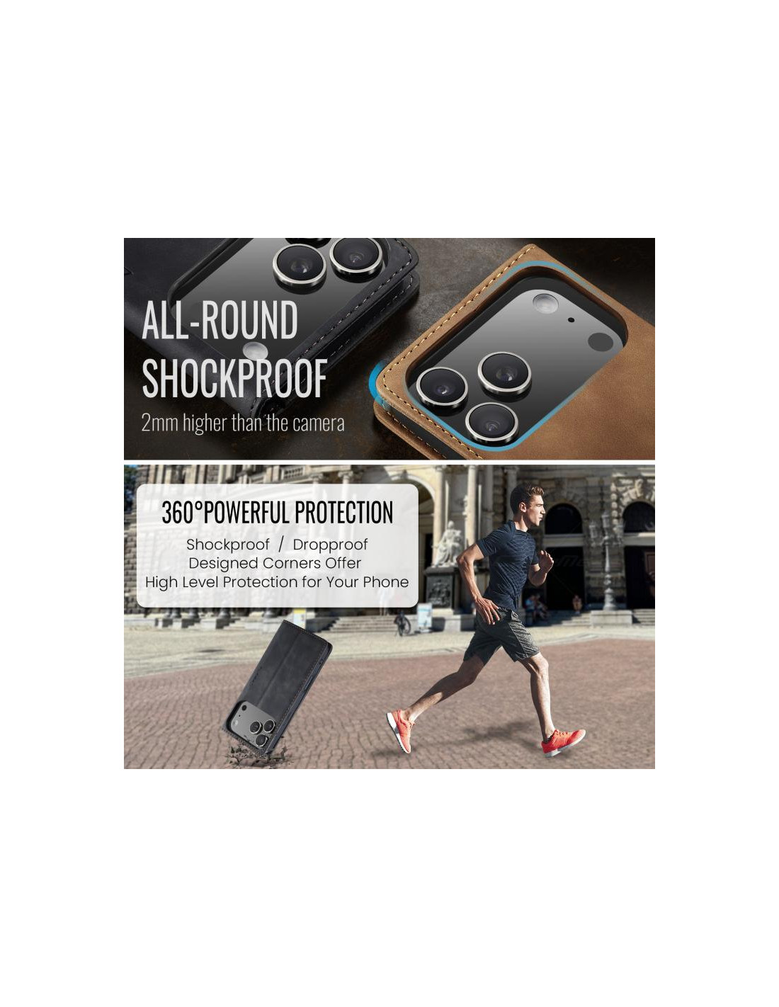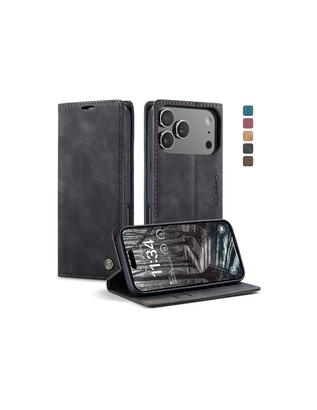Cover a libro in pelle per iPhone 17 Pro con design multifunzionale. Protezione completa e praticità d'uso quotidiano.