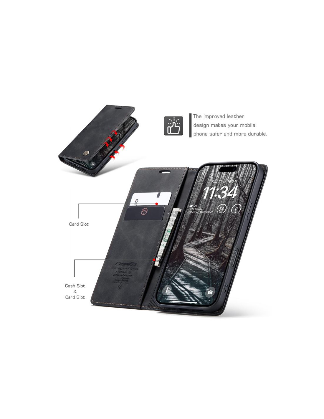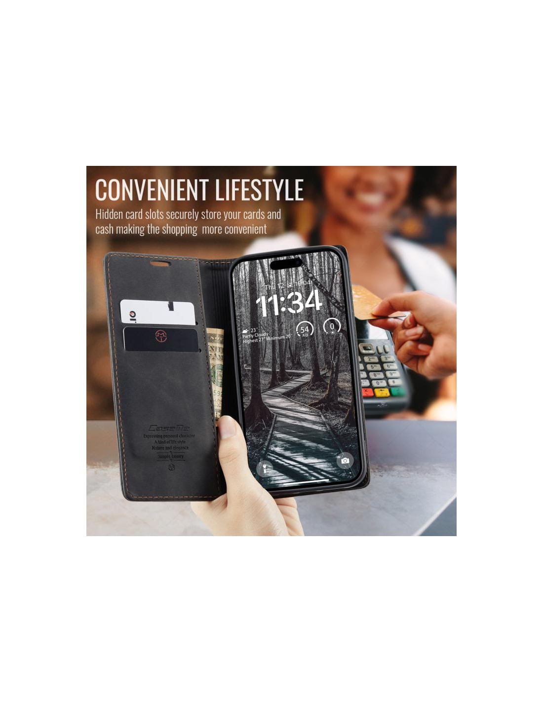 La cover CaseMe 013 per iPhone 17 Pro è una soluzione elegante e funzionale realizzata in pelle di qualità. Questo modello a libro offre protezione totale grazie al rivestimento in pelle pregiata e al design flip che avvolge completamente il dispositivo.