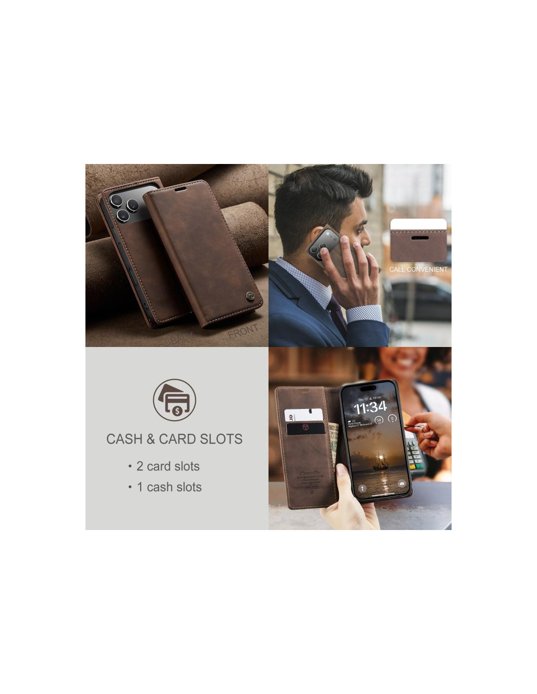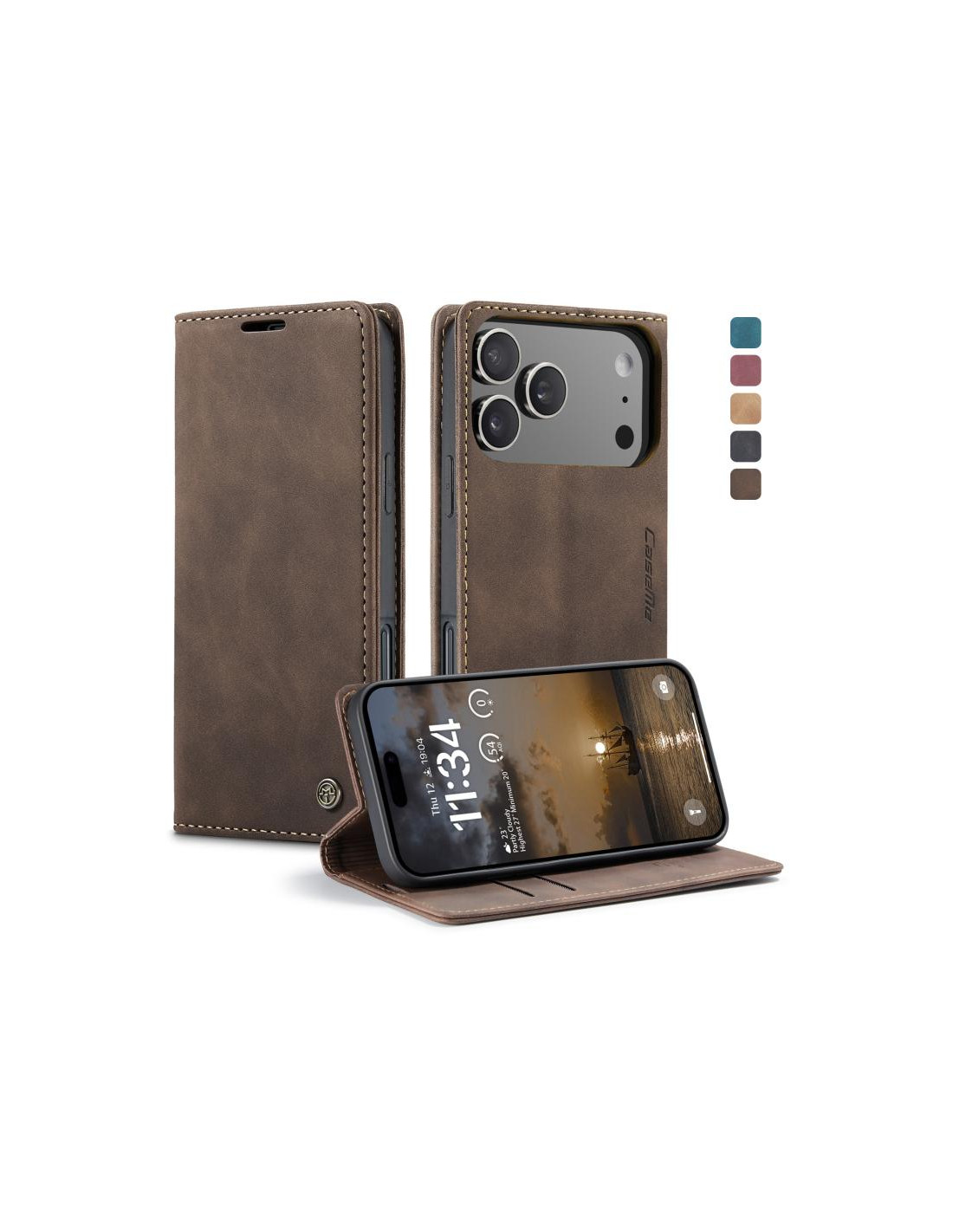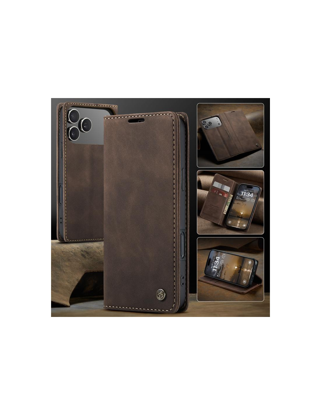 Questa elegante cover in pelle per iPhone 17 Pro Max combina stile e praticità con un design a libro che offre protezione completa al tuo dispositivo. La chiusura orizzontale flip garantisce facile accesso a tutti i controlli e permette di utilizzare il telefono in modalità stand per guardare video o effettuare videochiamate.