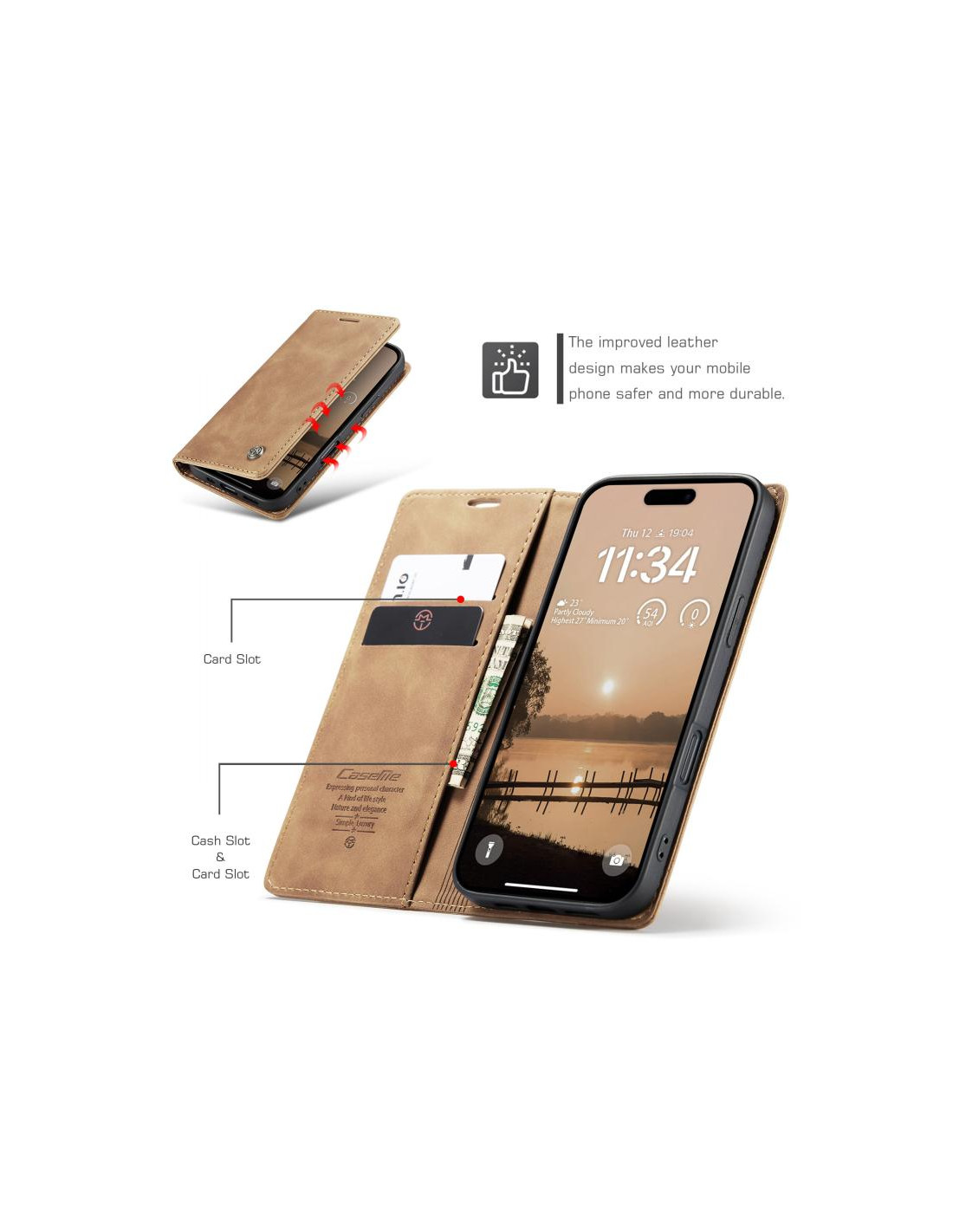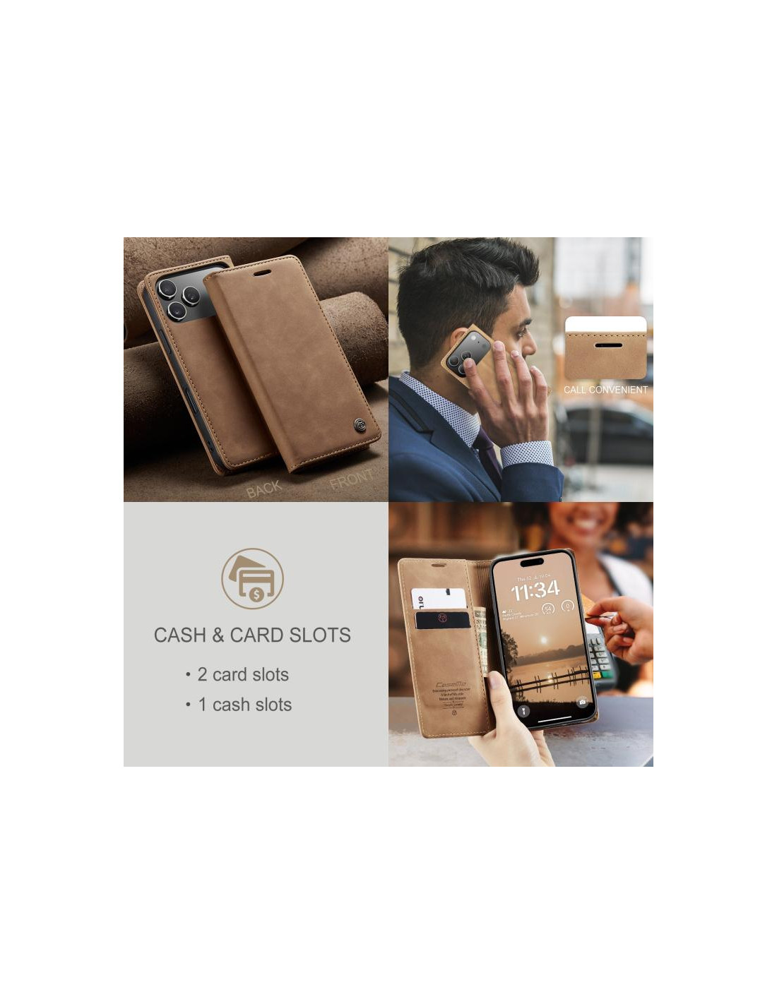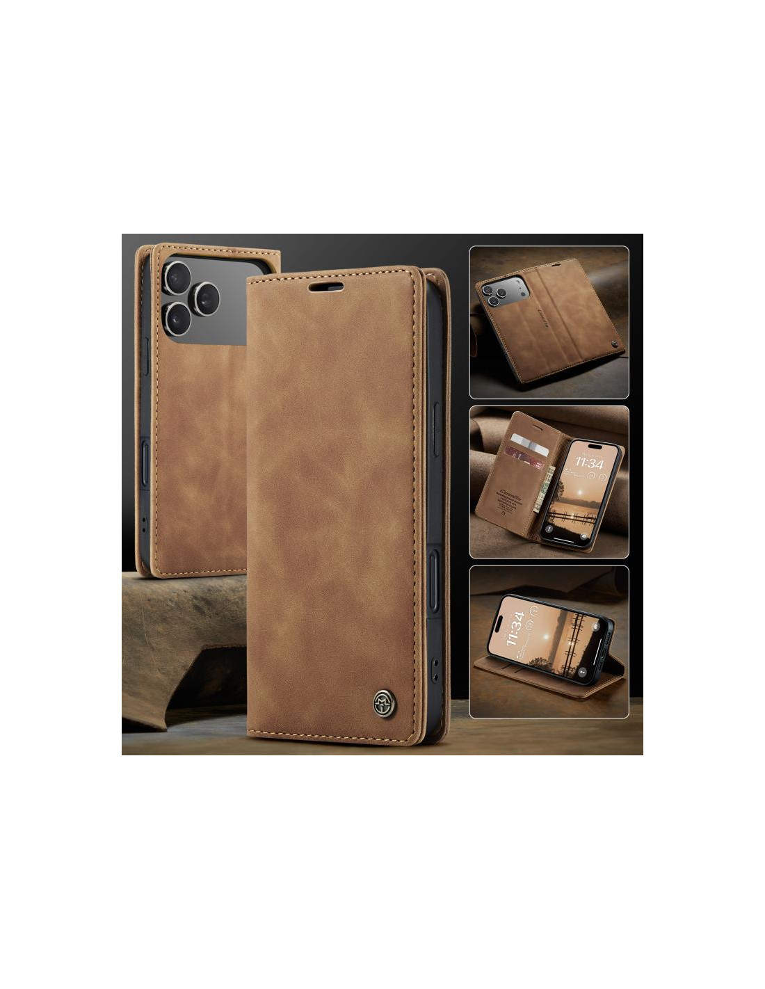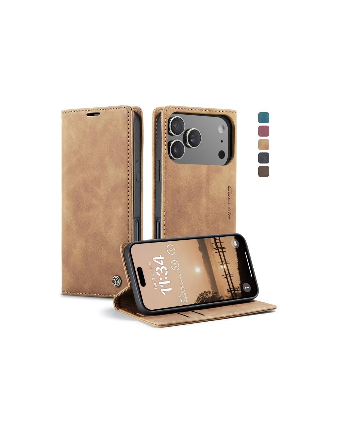 Cover iPhone 17 Pro Max Pelle Flip Multifunzione Caffè Marrone