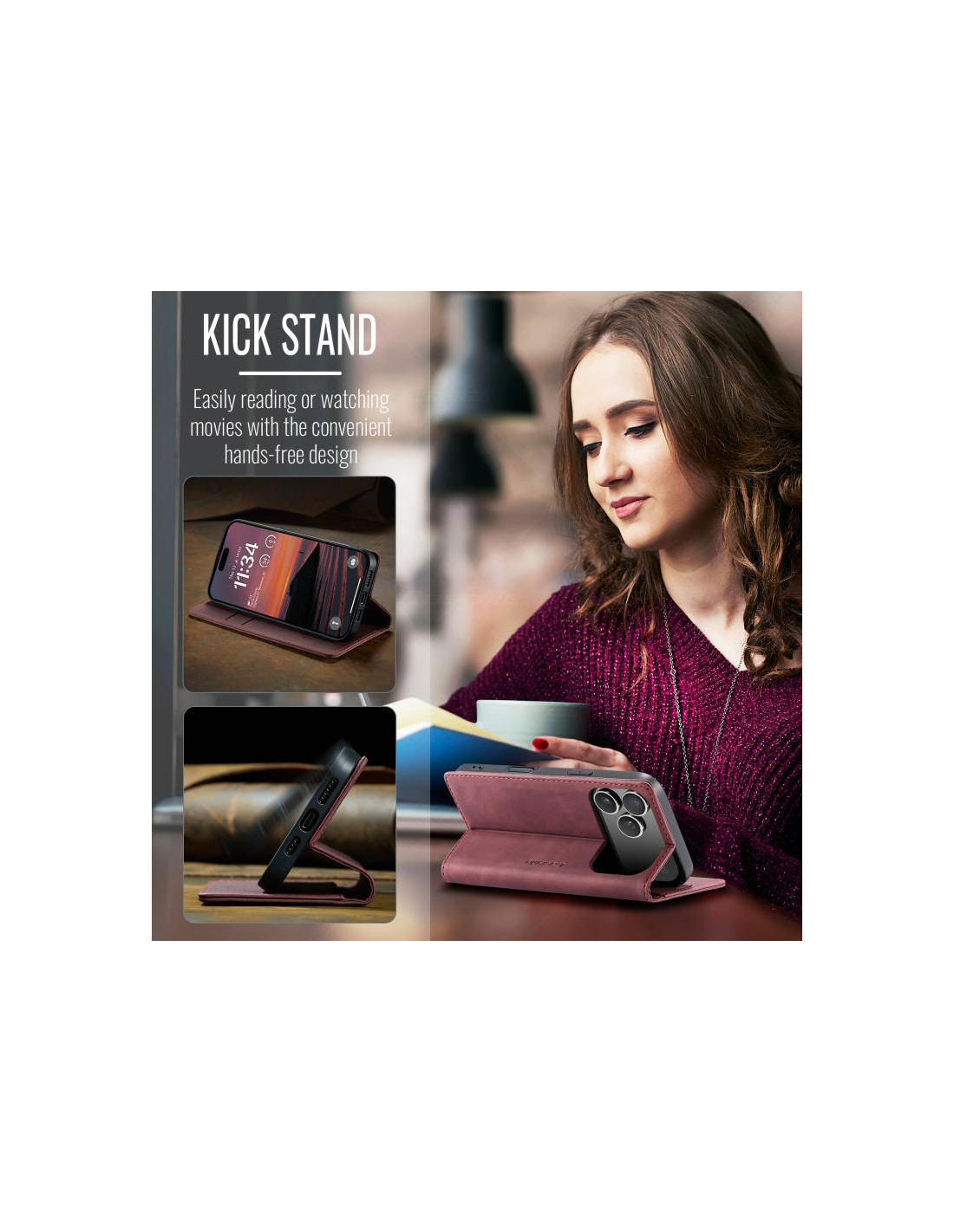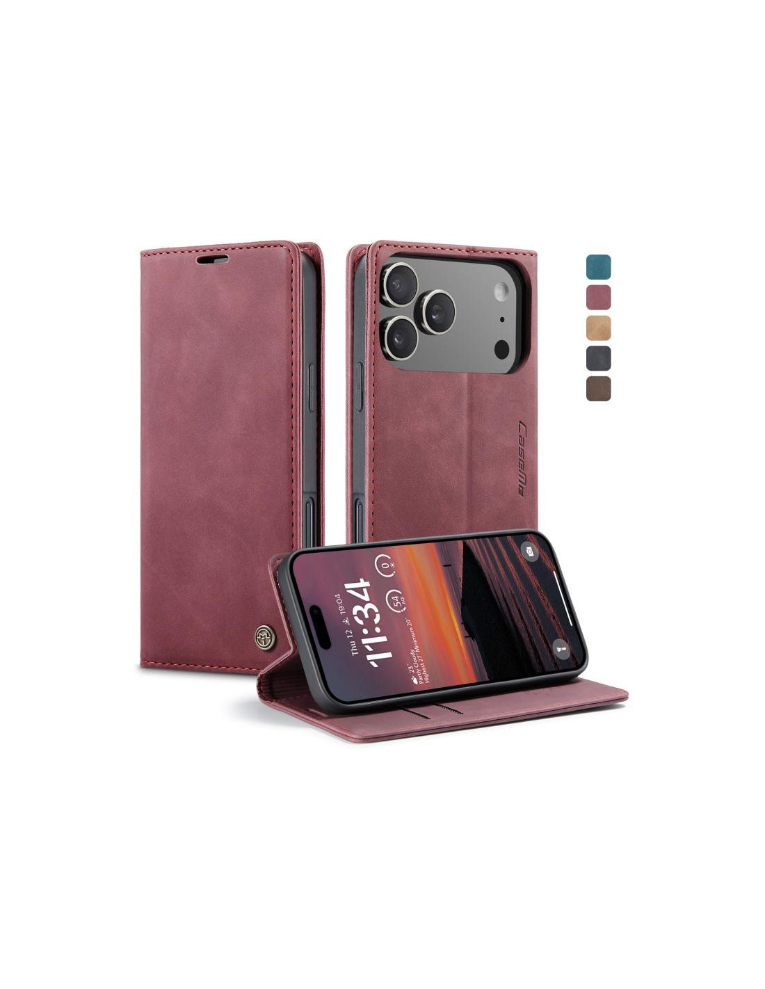 Cover iPhone 17 Pro Max Pelle Flip Multifunzione Caffè Rosso