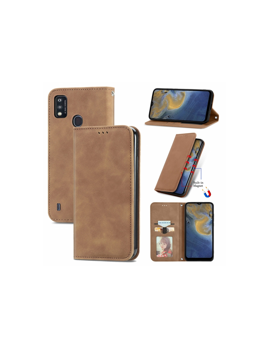Cover ZTE A51 Pelle Rossa Flip Portafoglio Marrone