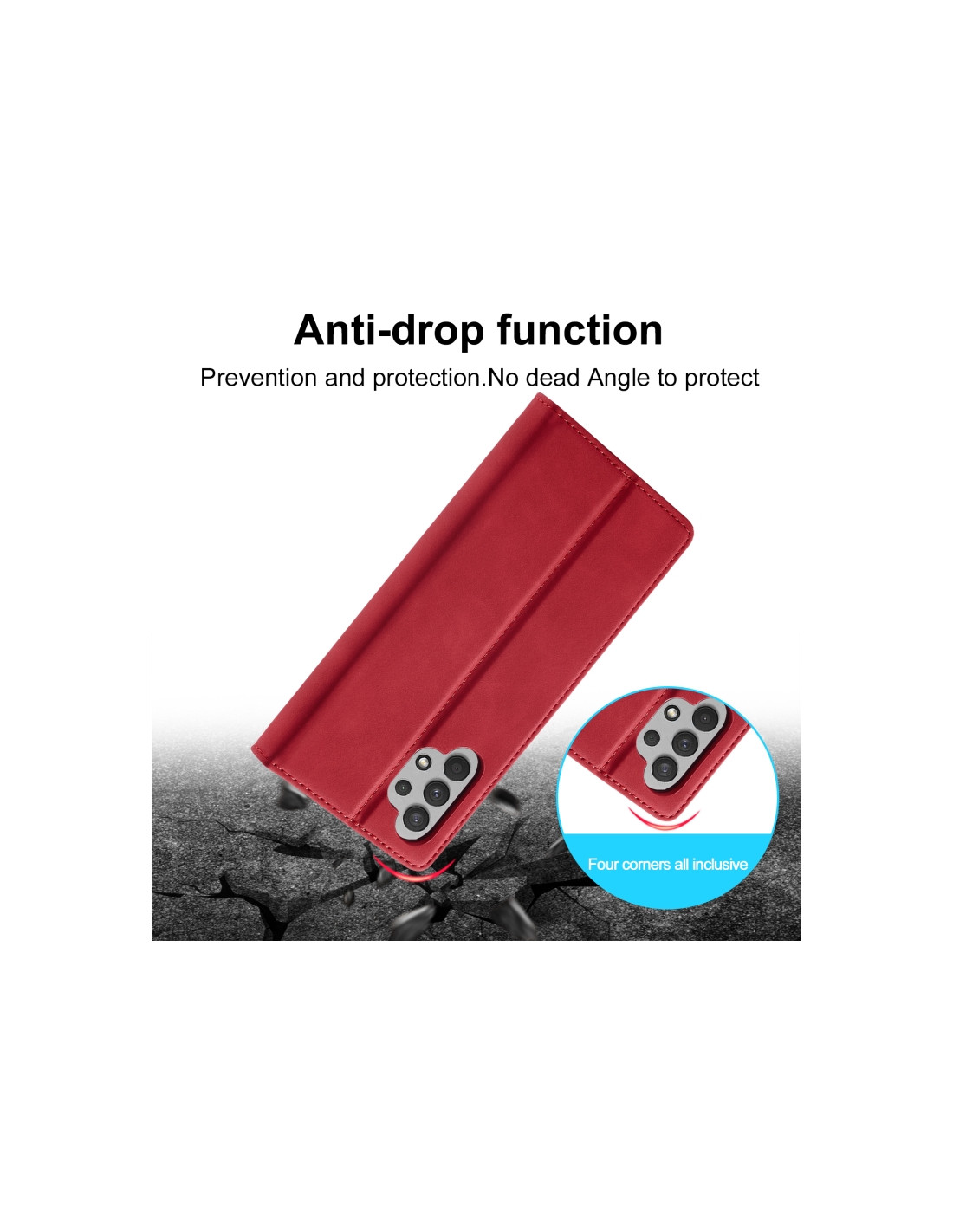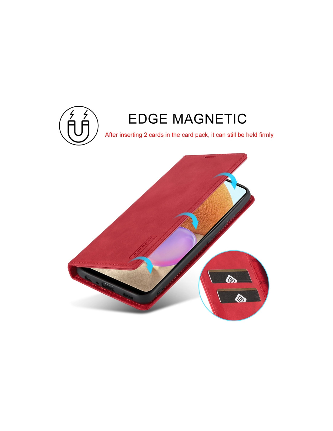 La cover flip magnetica per Galaxy A32 5G combina eleganza e funzionalità con un design a libro che protegge completamente il display. Realizzata in TPU morbido e pelle sintetica PU di qualità, offre una protezione solida dagli urti e dai graffi quotidiani.