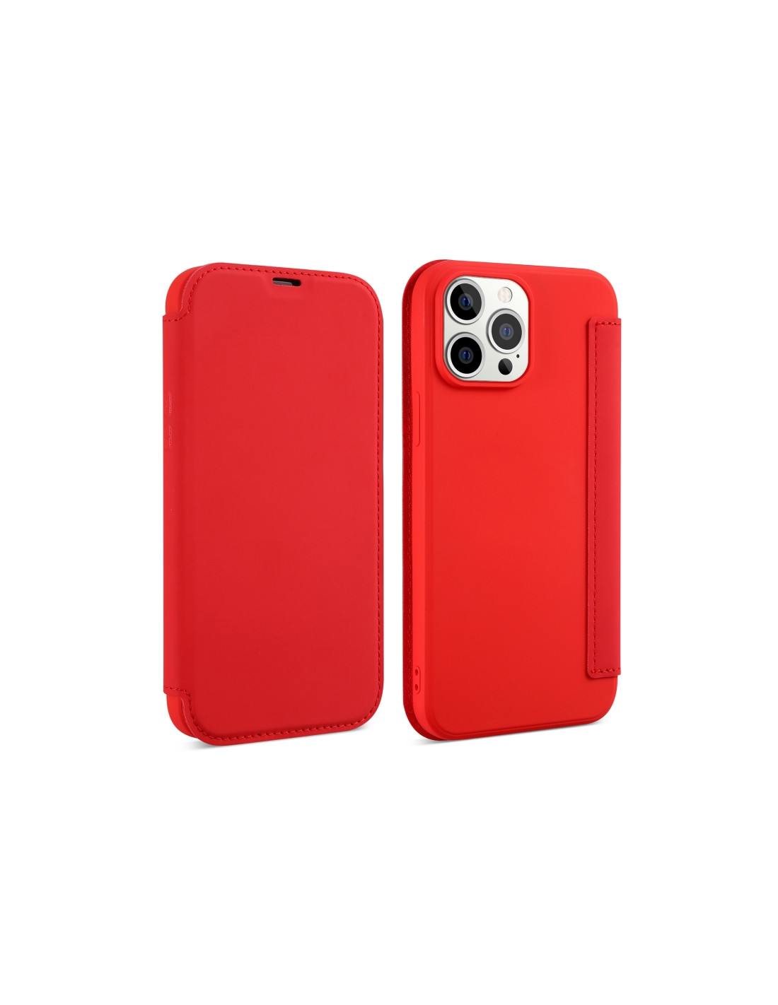 Cover iPhone 13 Pro Max Pelle PU con Supporto Rosso