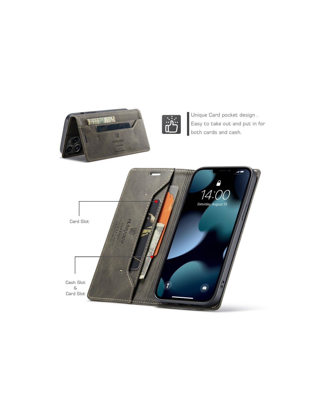 Cover iPhone 13 Pro PU Leather Flip Coffee | Melacompro