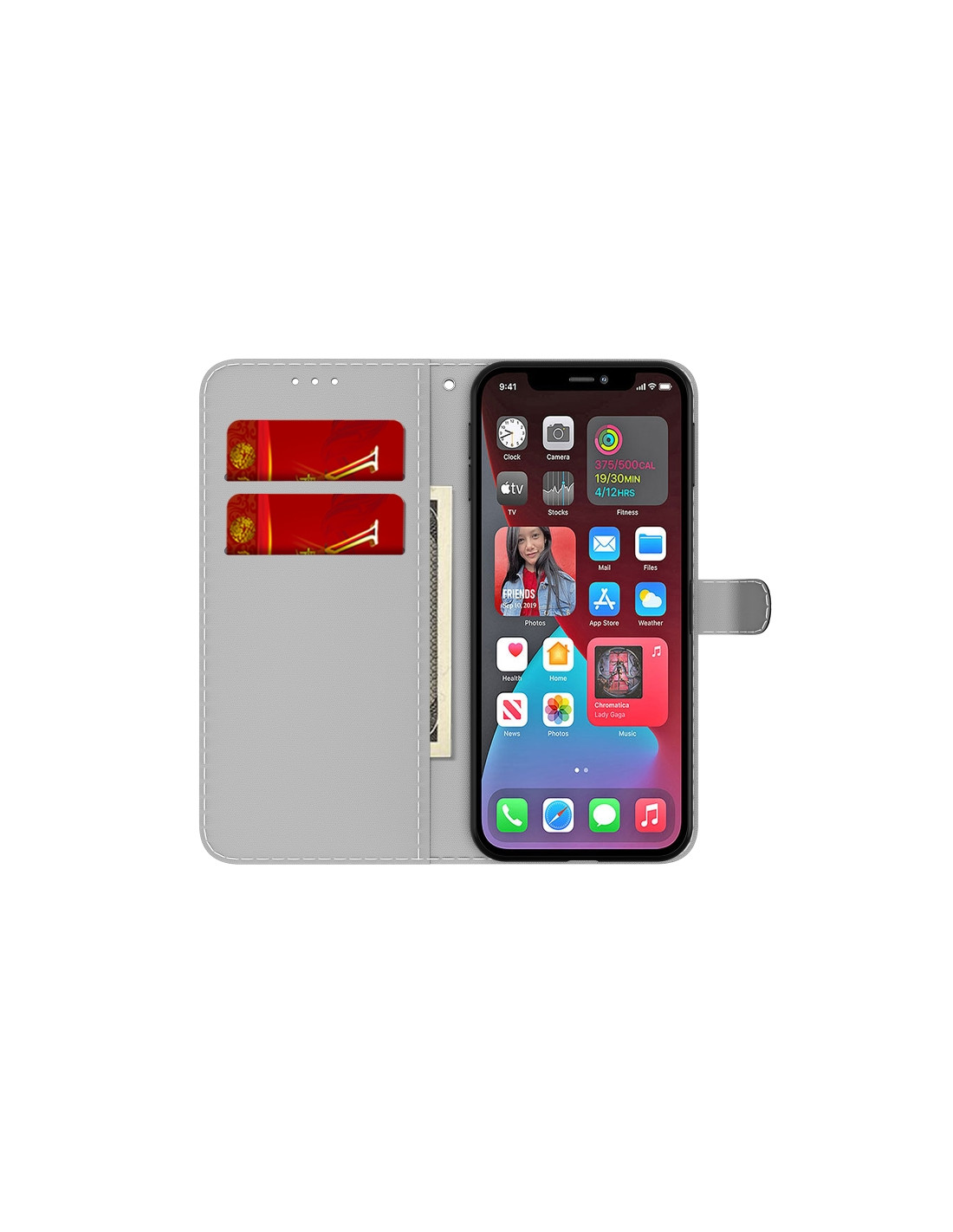 Cover a libro in pelle per iPhone 13 Pro con design acquerello invernale, scomparti per carte e portafoglio integrato.