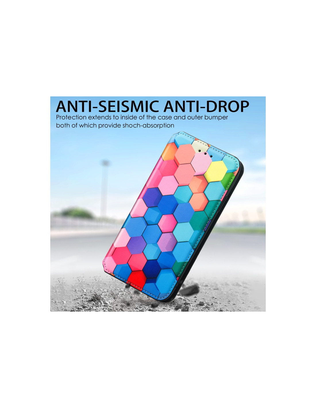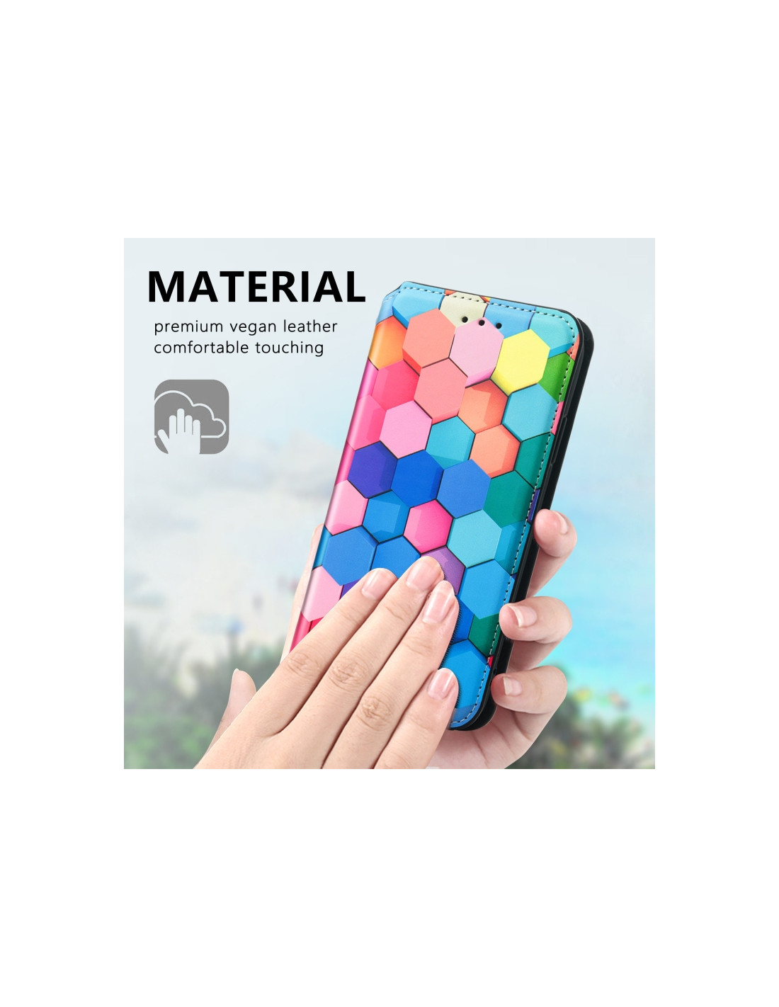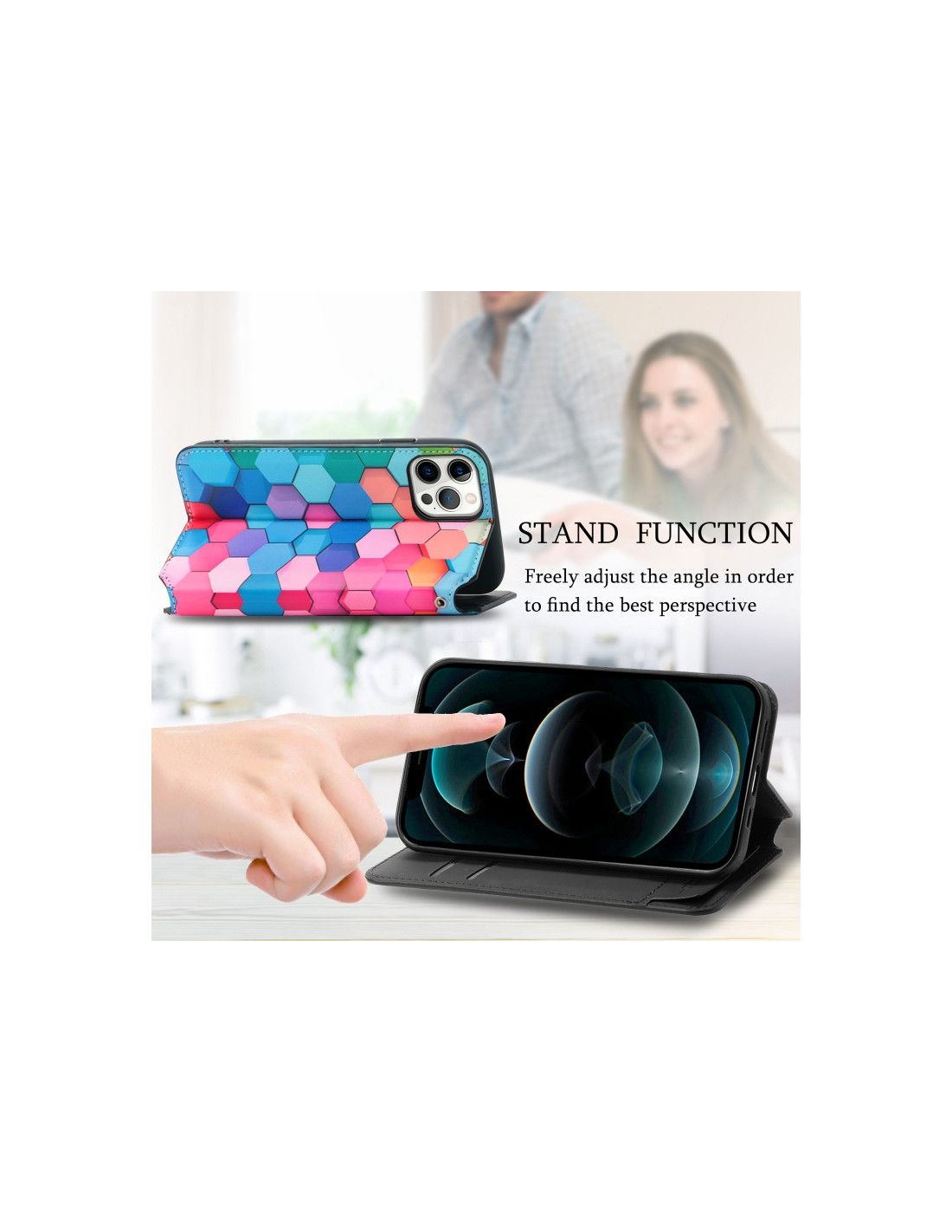 Proteggi il tuo iPhone 13 Pro con questa elegante cover a libro realizzata in pelle PU di qualità. Il design a favo multicolore combina stile e funzionalità, offrendo una protezione completa dello schermo e della scocca. La chiusura magnetica mantiene il dispositivo saldamente chiuso, mentre lo stand integrato consente di posizionare il telefono in modalità visione per guardare video e navigare comodamente. Caratteristiche principali: