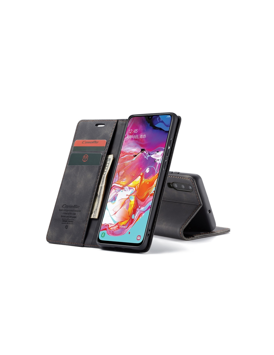 Proteggi il tuo Galaxy A70 con eleganza e funzionalità. Scopri questa cover portafoglio su Melacompro e trasforma il tuo smartphone in un accessorio multifunzionale.