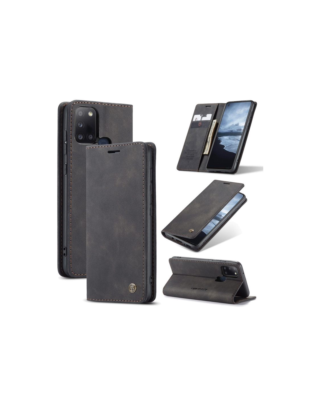 Cover a libro in pelle per Galaxy A21S con slot carte e supporto. Protezione completa e design retrò elegante.
