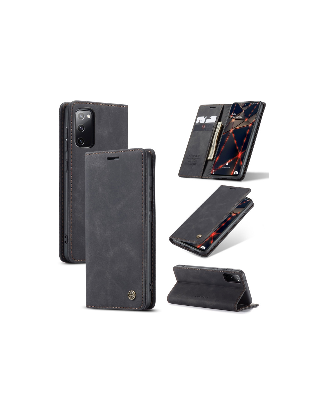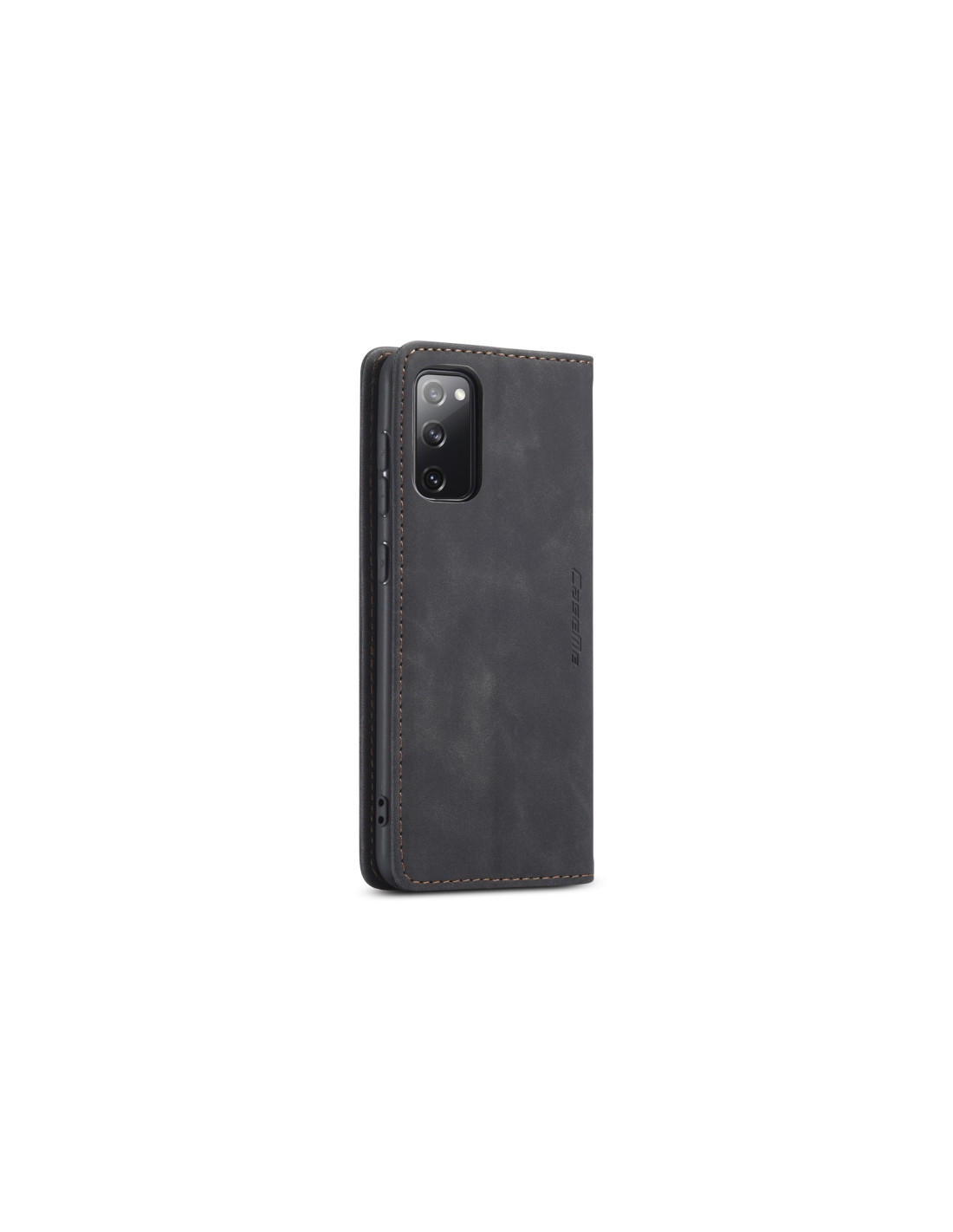 Cover a libro in pelle per Galaxy S20 FE con porta carte e funzione portafoglio. Protezione completa e pratica.