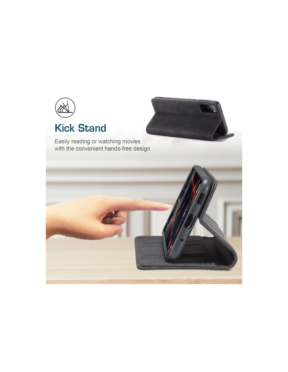 Proteggi il tuo Galaxy S20 FE con questa elegante cover a libro in pelle, realizzata con i migliori materiali per garantire durabilità e stile. Il design multifunzionale riunisce tutto ciò di cui hai bisogno in un'unica soluzione compatta.