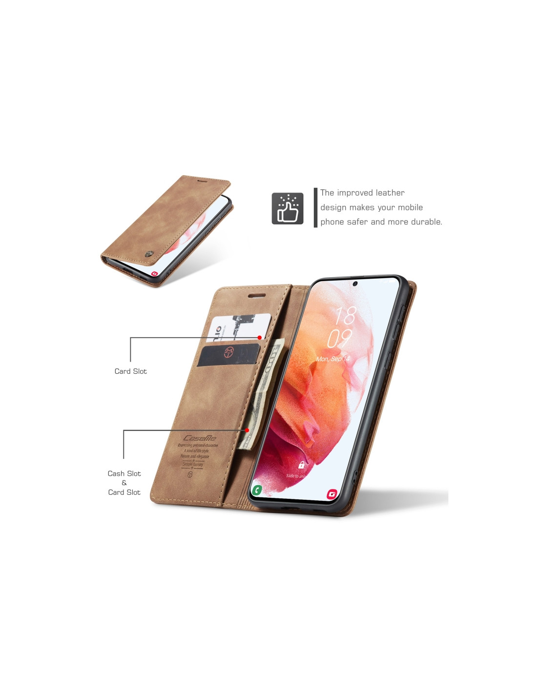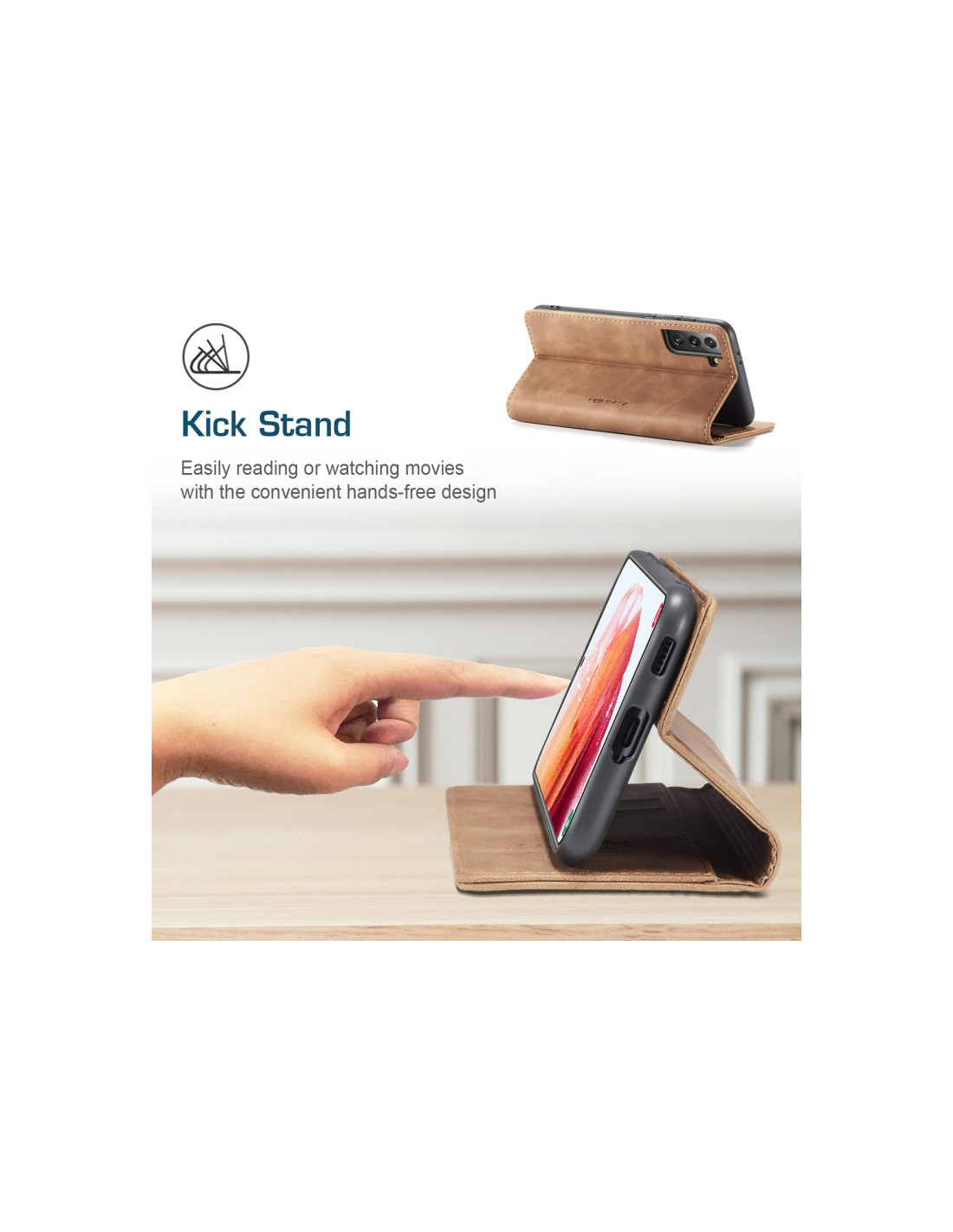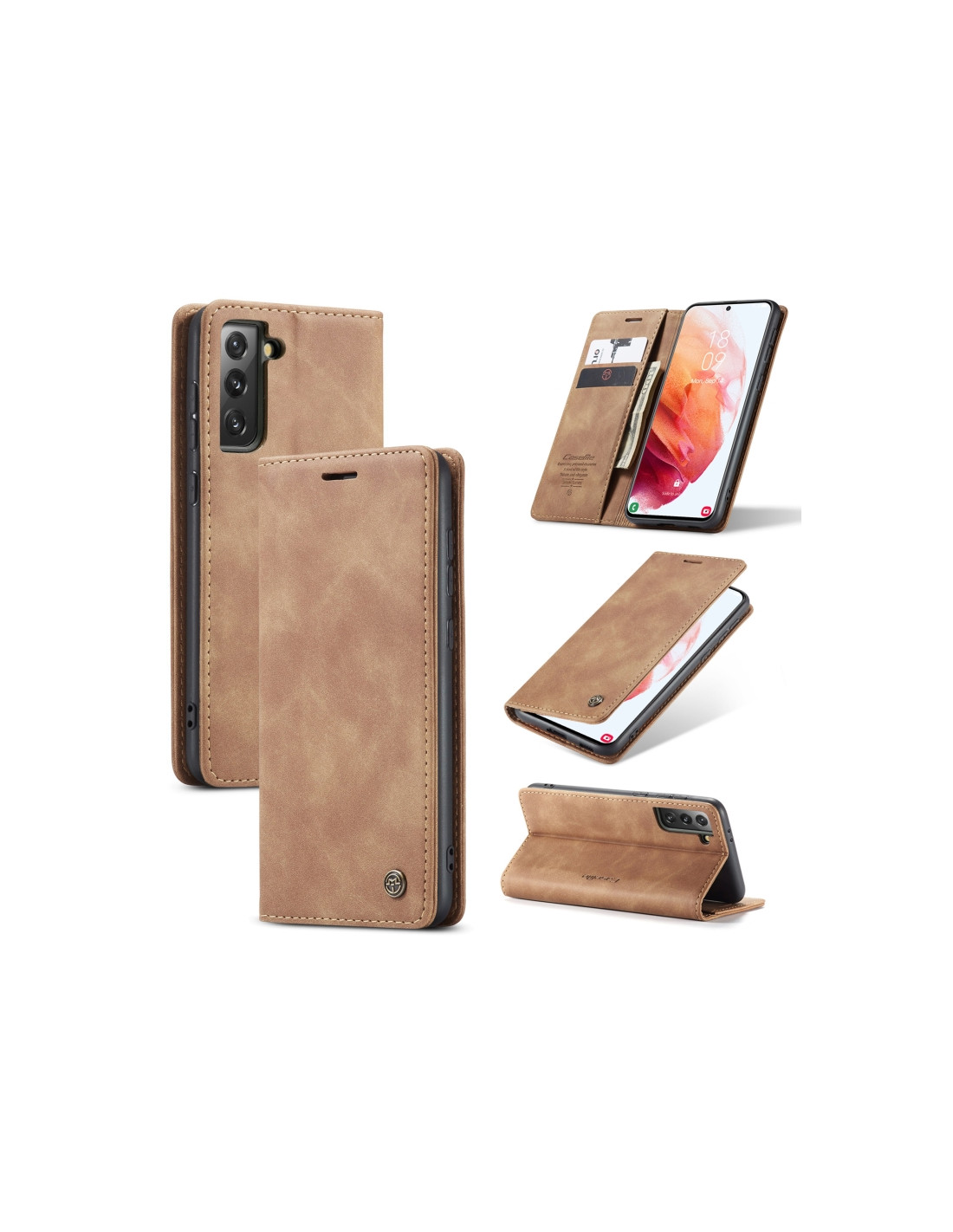 Cover Galaxy S21 5G Pelle Portafoglio con Supporto Marrone