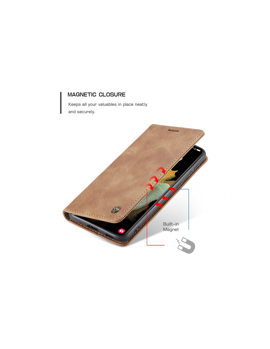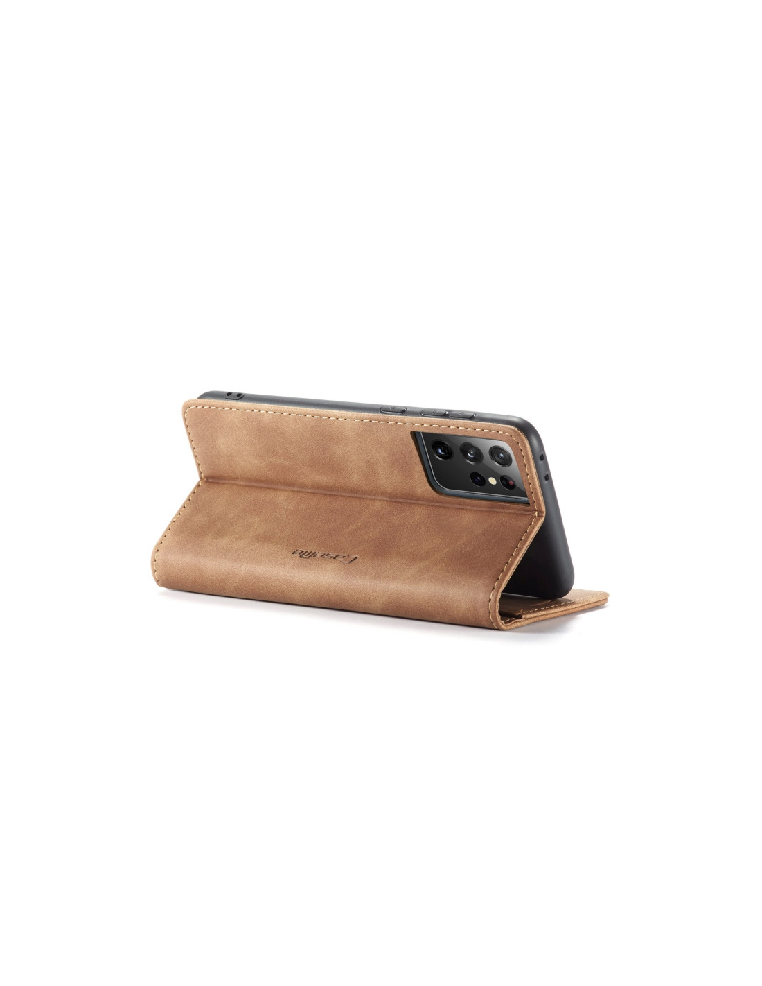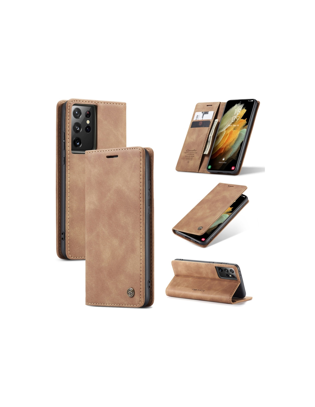 Proteggere il tuo Galaxy S21 Ultra con stile è facile con questa elegante cover a libro realizzata in pelle di qualità. Progettata con un design orizzontale che combina estetica raffinata e funzionalità pratica.