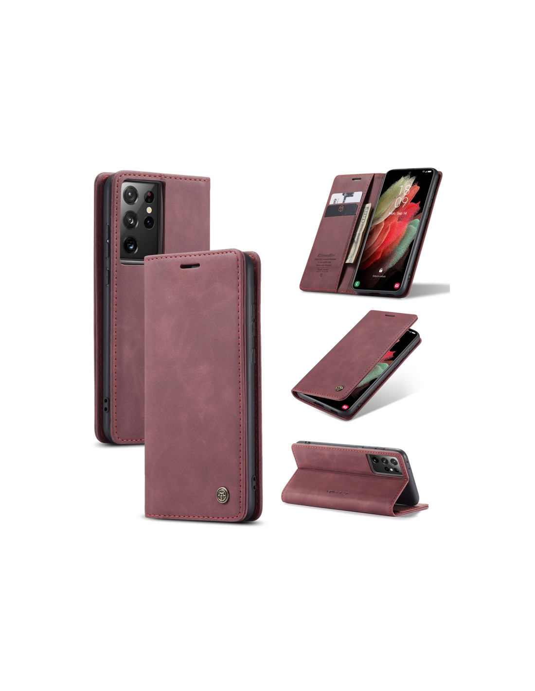 Cover Galaxy S21 Ultra 5G Pelle con Portafoglio Wine Rosso