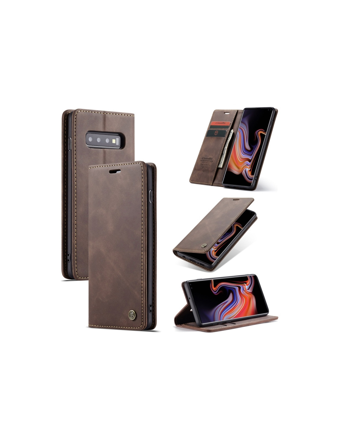 Cover a libro in pelle per Galaxy S10 Plus con portafoglio integrato, slot per carte e supporto. Design retrò satinato.