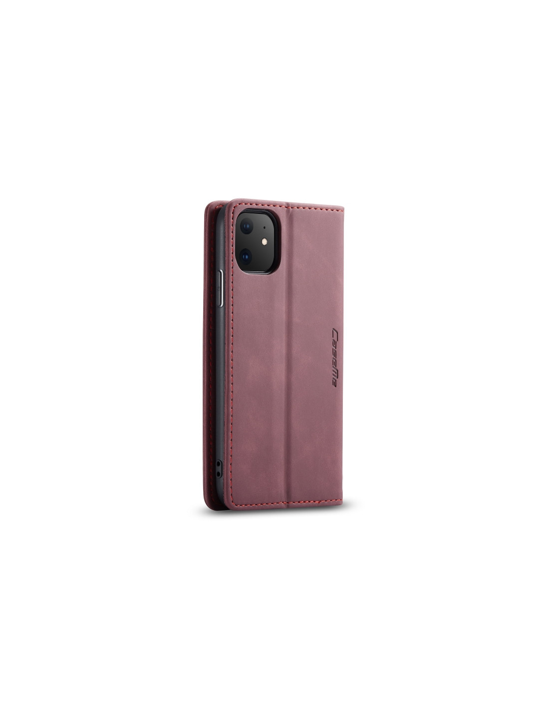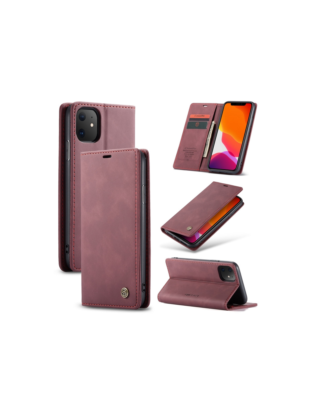 Cover a libro in pelle per iPhone 11 con portafoglio integrato, slot per carte e supporto. Design nero elegante.