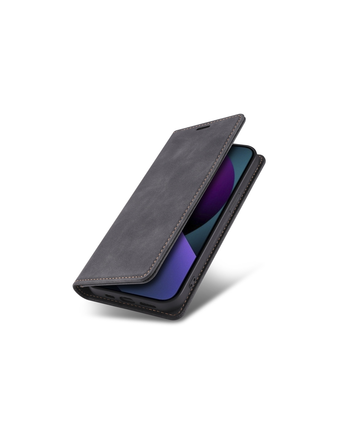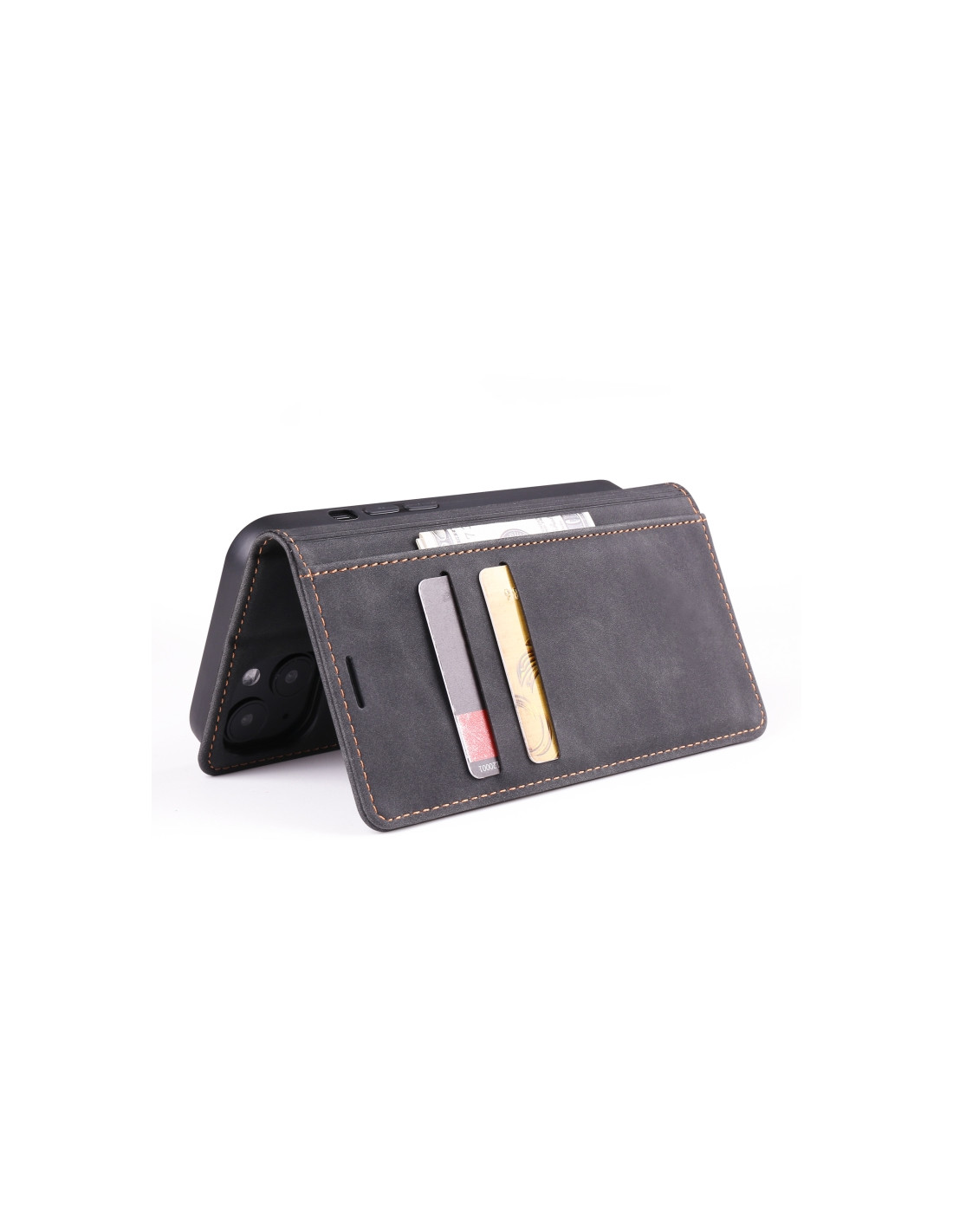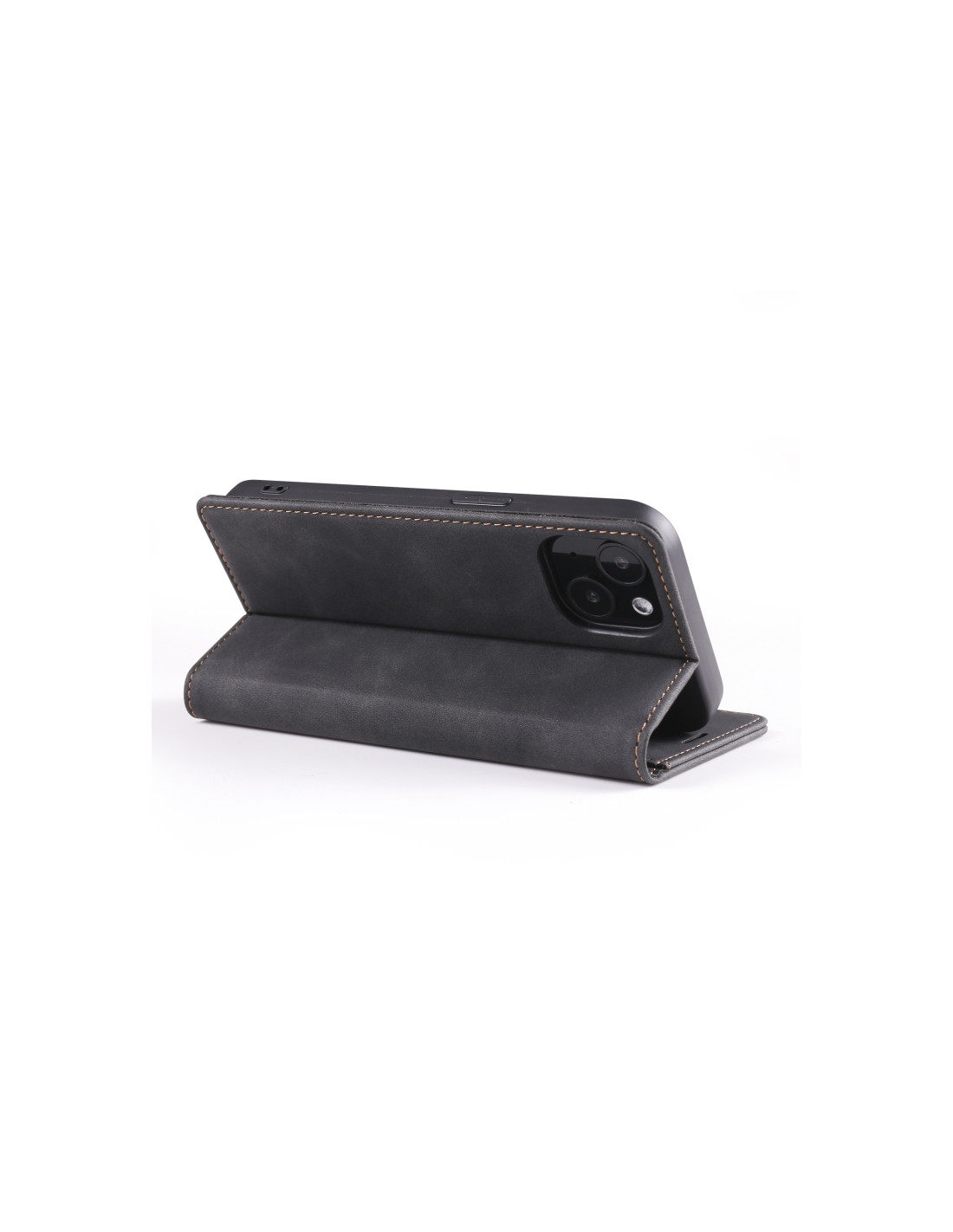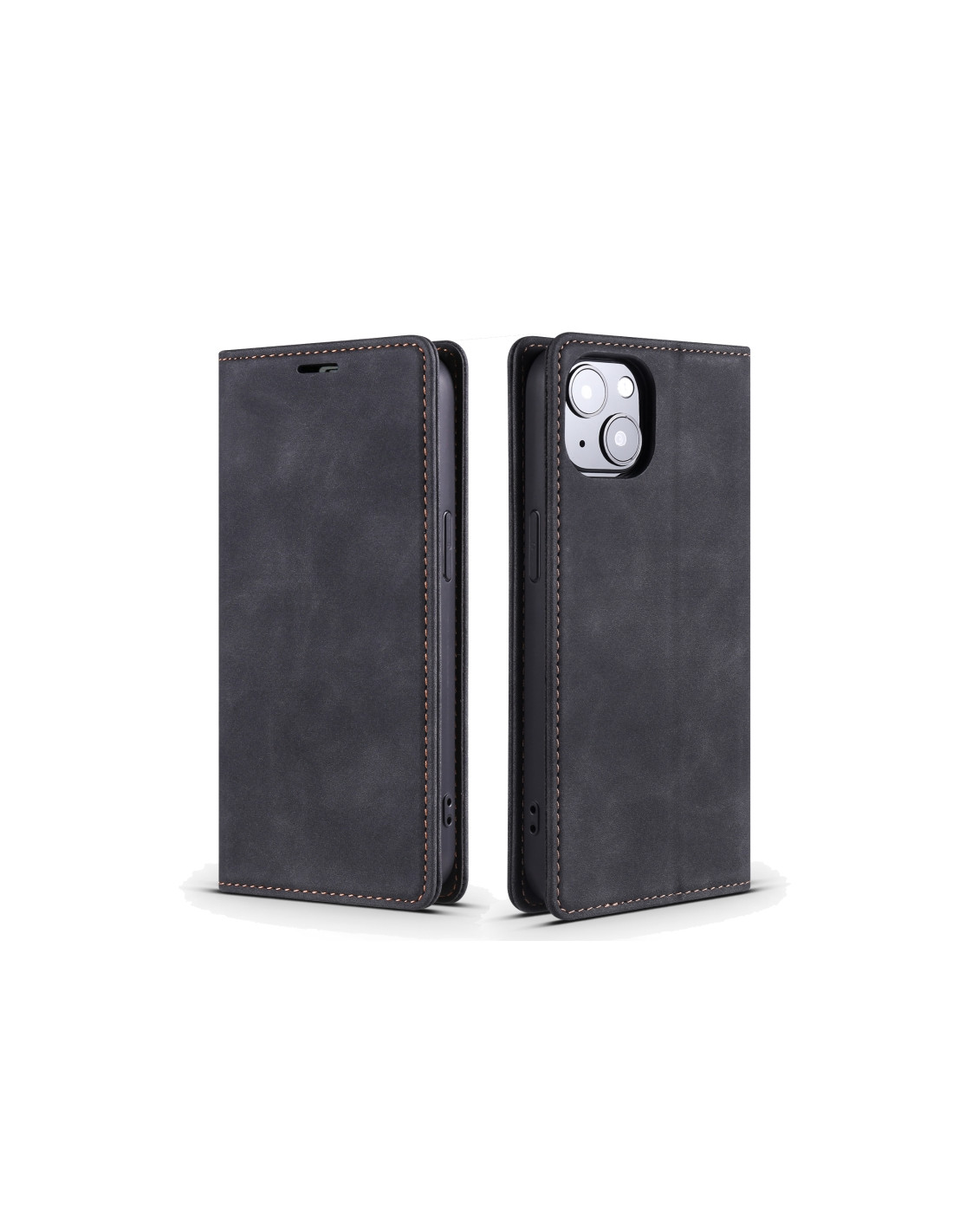 Cover a libro in pelle PU per iPhone 13 con funzione supporto, scomparti per carte e portafoglio integrato.