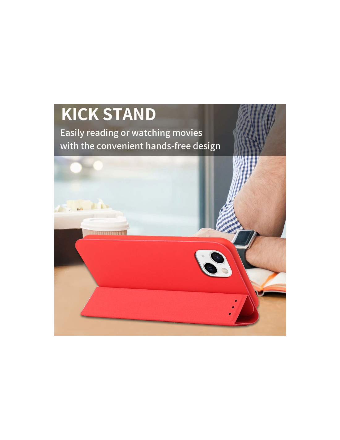 Cover a libro in pelle PU per iPhone 13 con funzione supporto, scomparti per carte e portafoglio integrato.