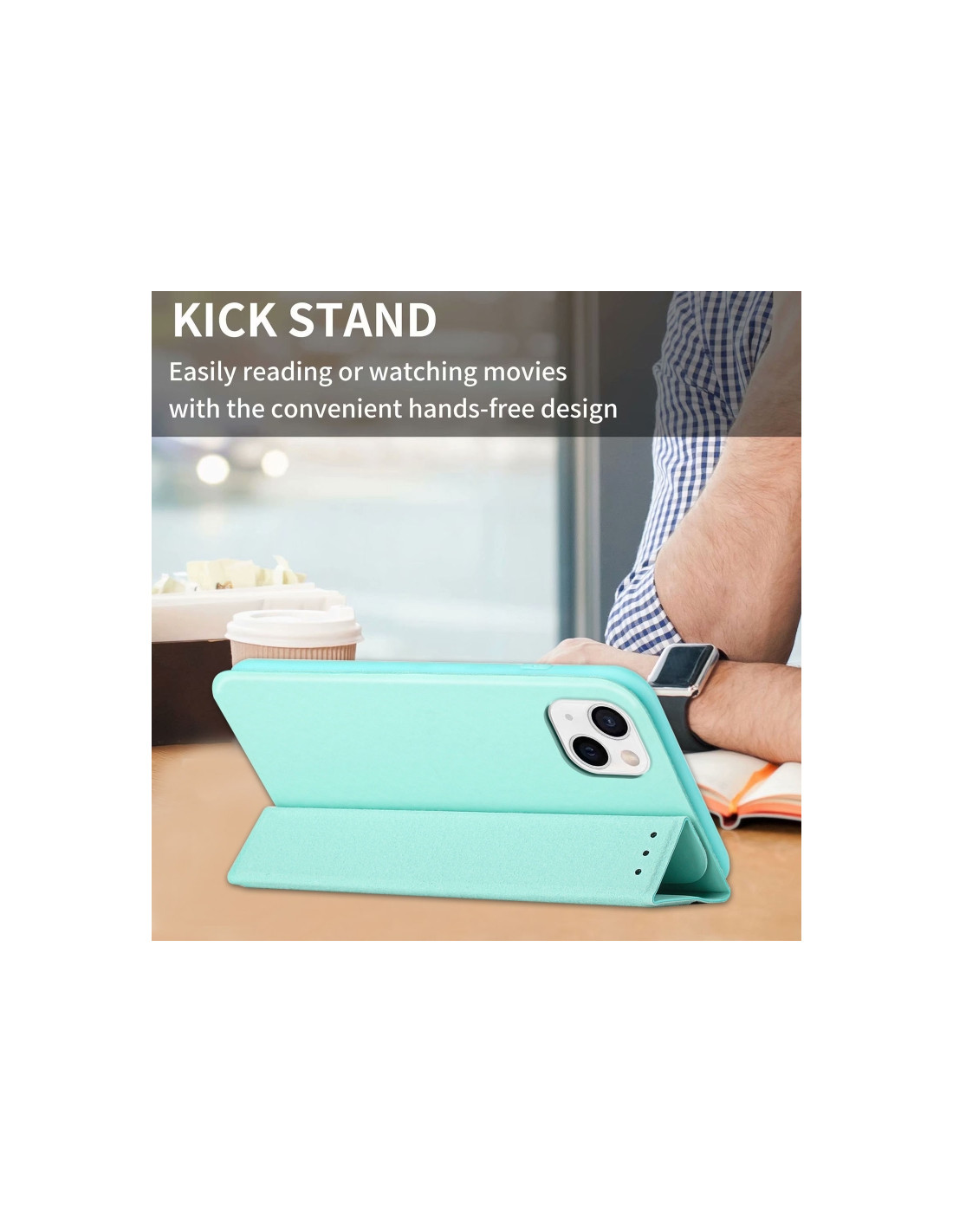 Cover a libro in pelle PU per iPhone 13 con funzione supporto, scomparti per carte e portafoglio integrato.