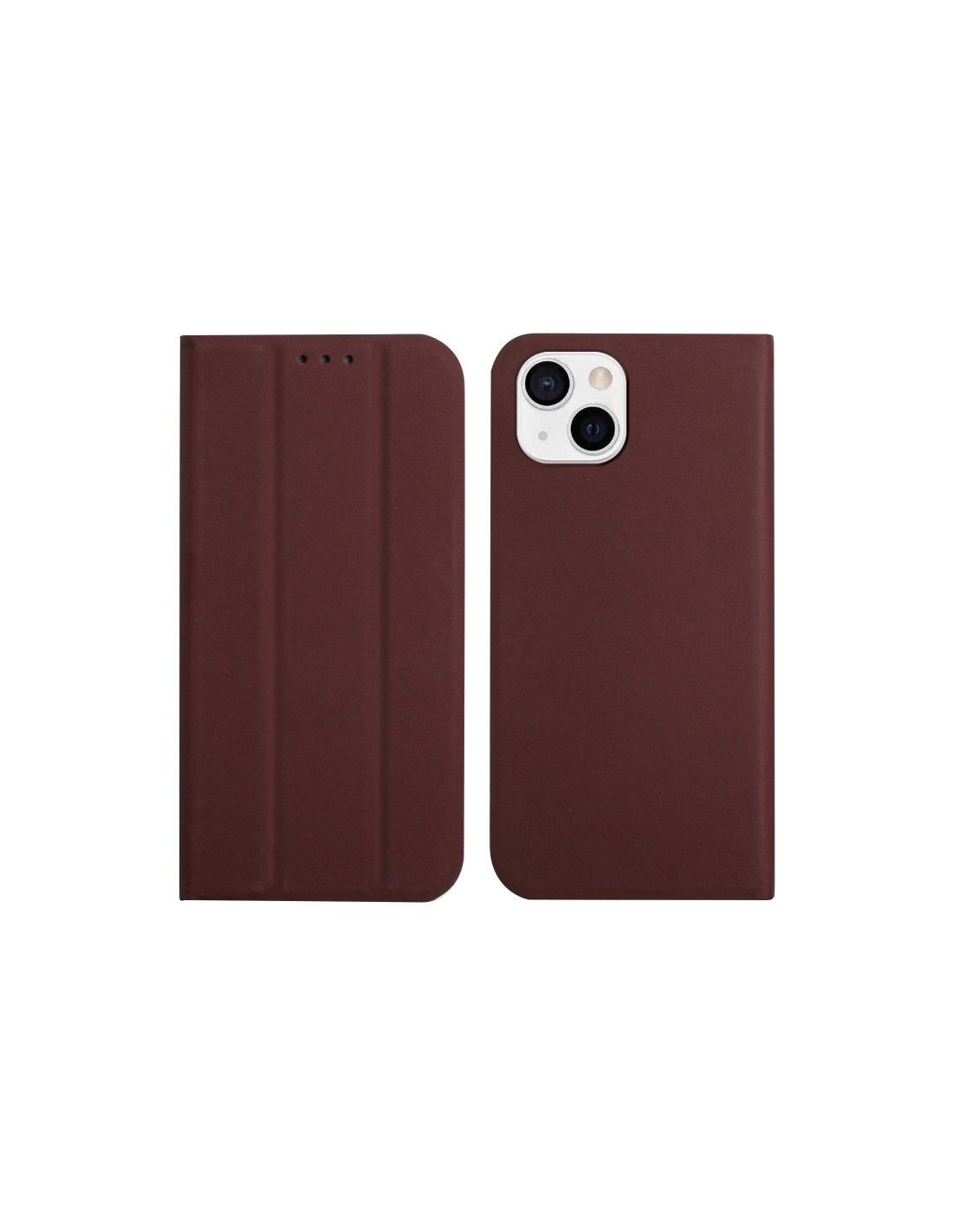 Cover iPhone 13 Pelle PU Rosso Vino con Porta Carte Marrone