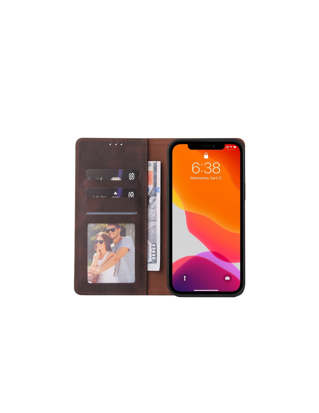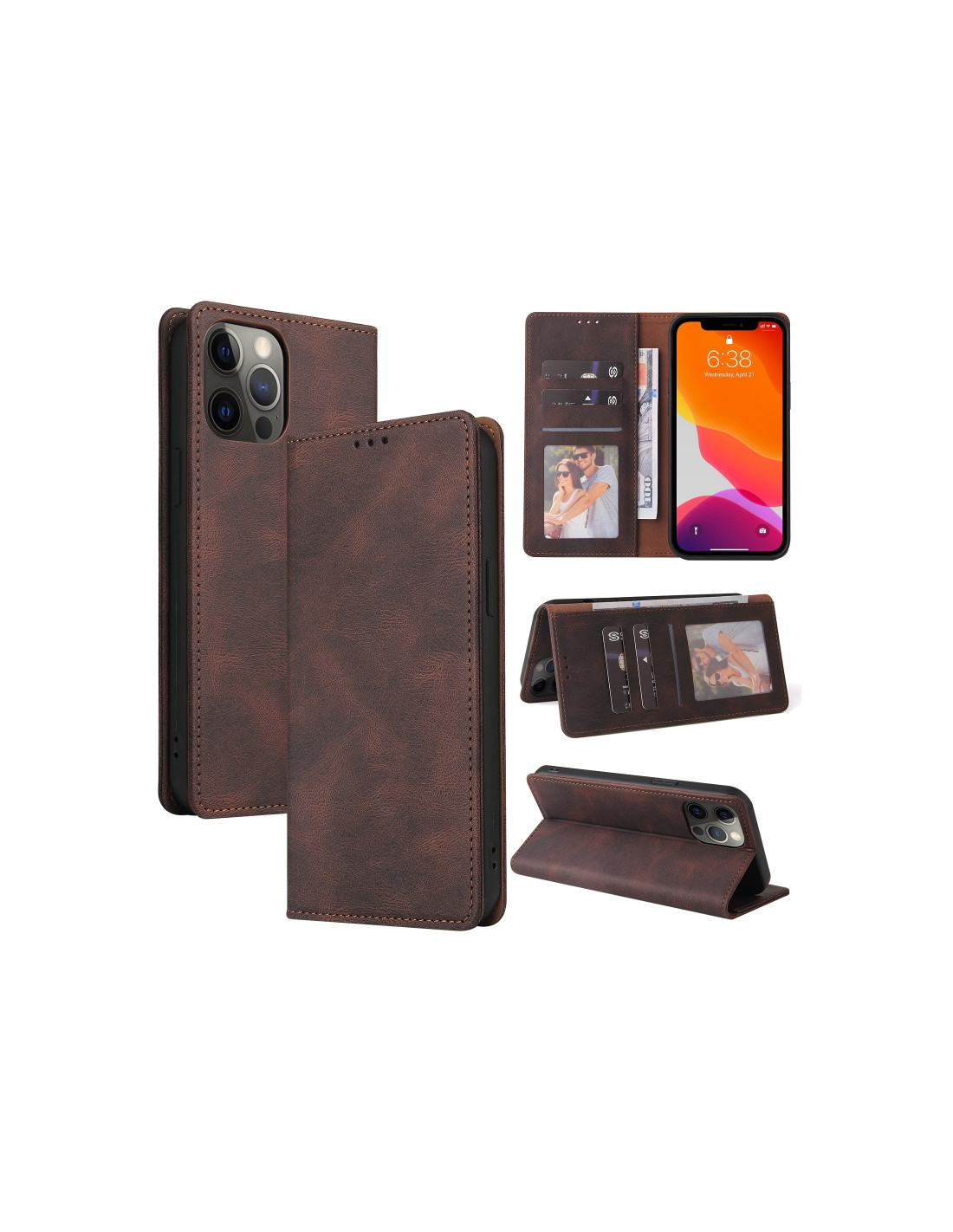 Cover a libro in pelle per iPhone 12 Pro Max con chiusura a ventosa, slot per carte e portafoglio integrato.