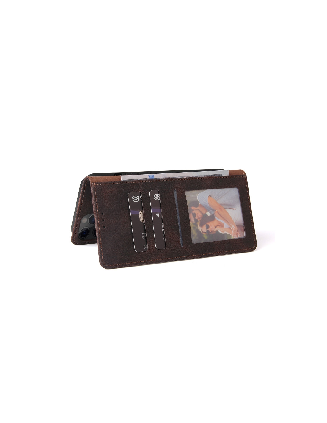 Cover iPhone 12 Pro Max Pelle Nero Portafoglio Marrone