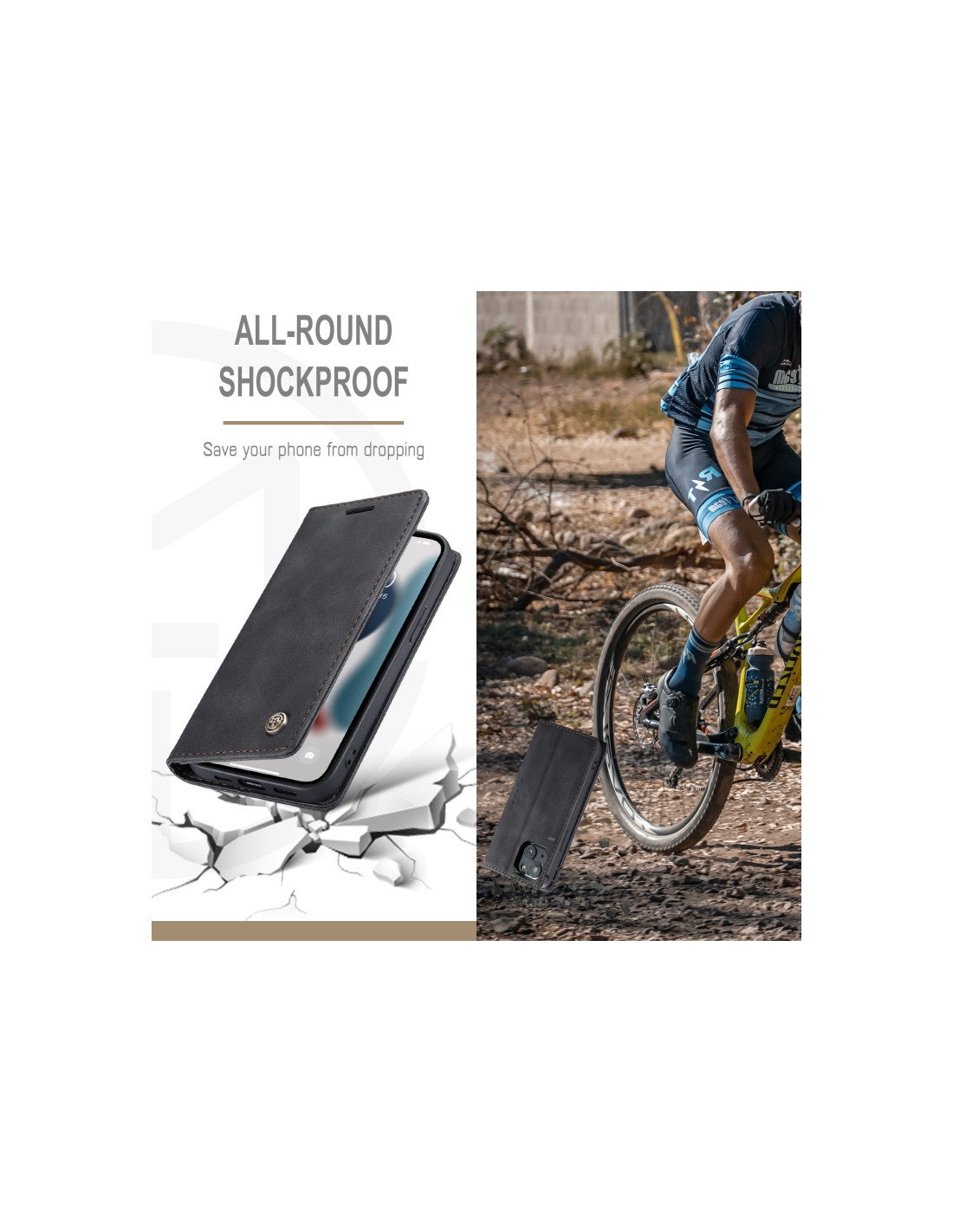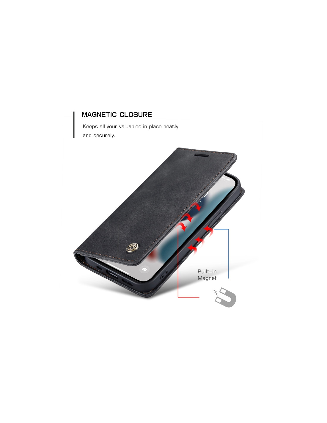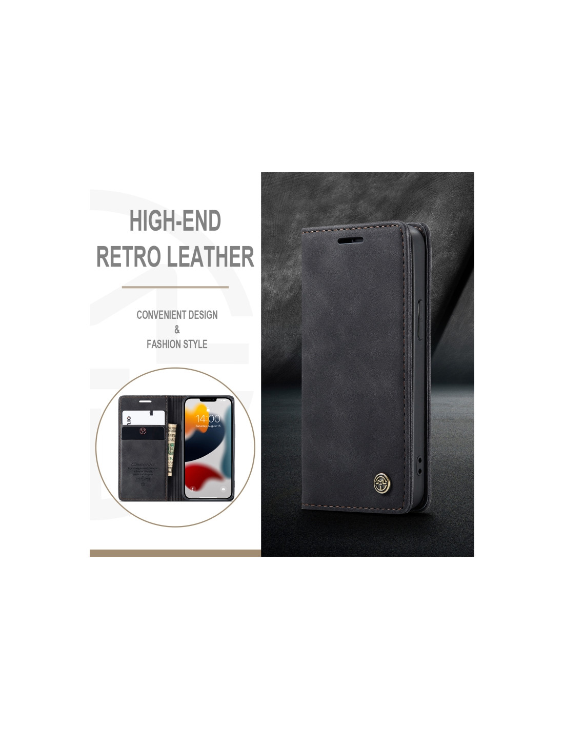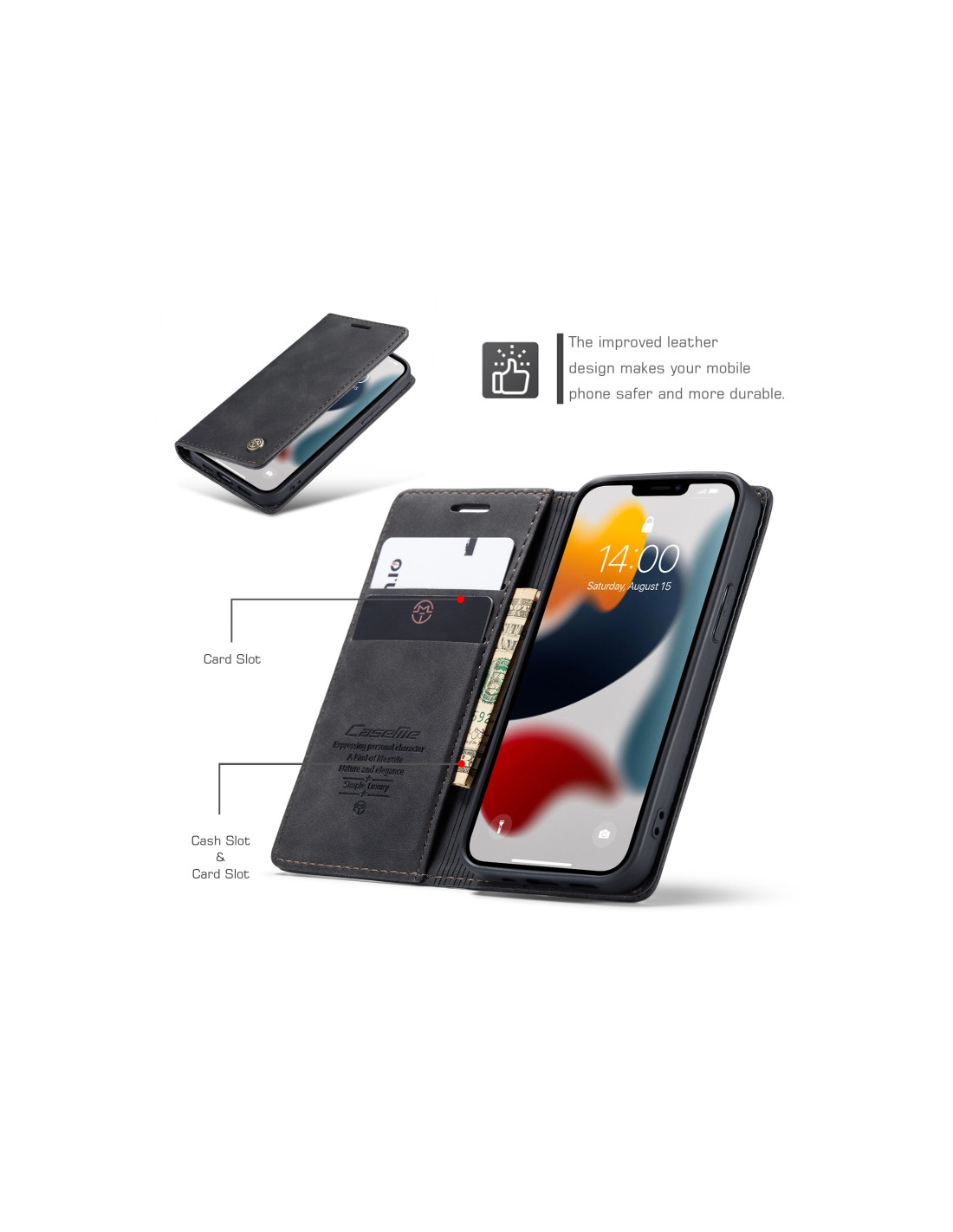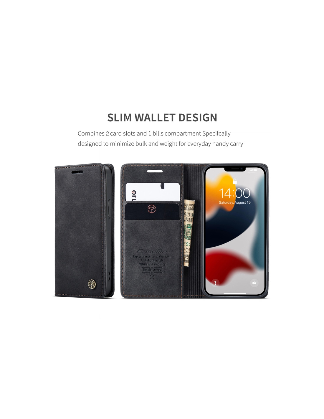 La cover a libro CaseMe-013 è stata progettata per proteggere il tuo iPhone 13 mini con stile e praticità. Realizzata in pelle PU di qualità, combina un design retrò elegante con una finitura opaca che assicura un grip confortevole. Caratteristiche principali: