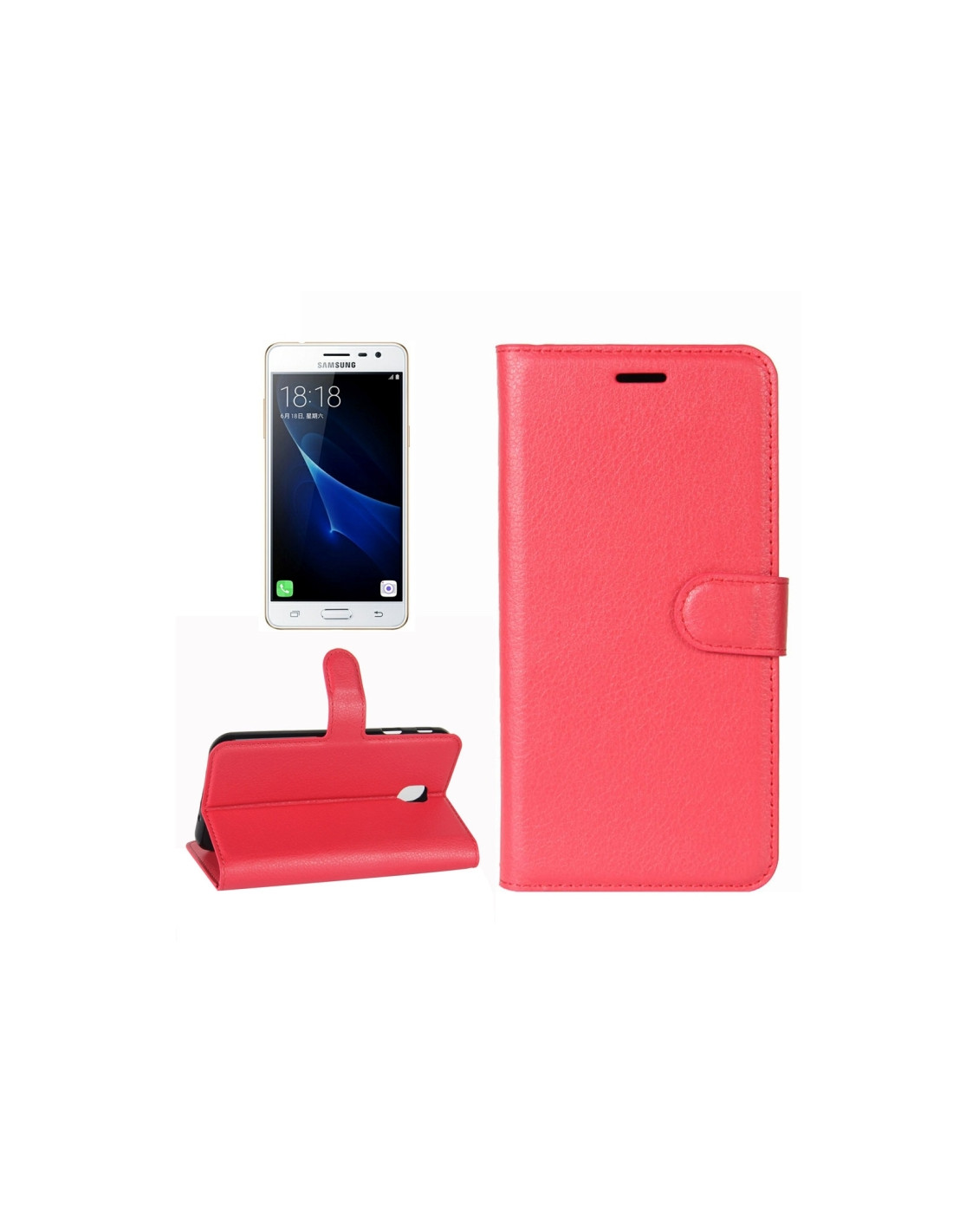 Proteggi il tuo Galaxy J3 2017 con questa elegante cover a libro in pelle PU con raffinata texture litchi. Il design orizzontale offre un'esperienza d'uso intuitiva e sofisticata.