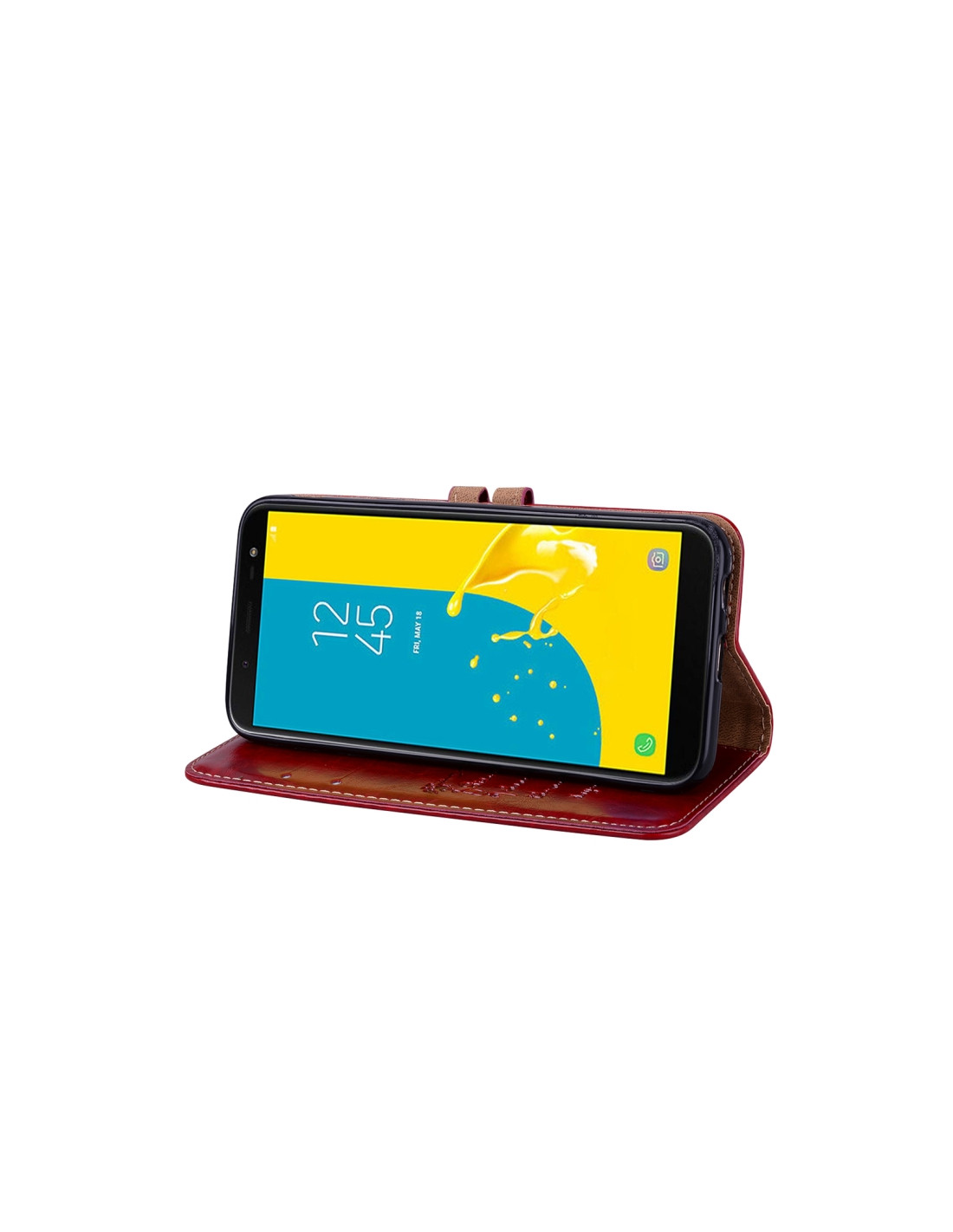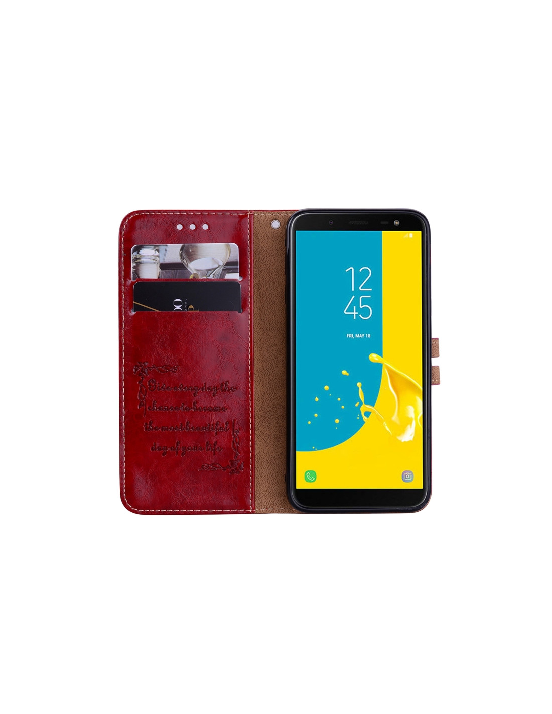 Proteggi il tuo Galaxy J6 EU 2018 con questa elegante cover a libro in pelle con texture oil wax. Il design business style combina protezione e stile, perfetto per chi cerca un accessorio professionale e funzionale. La finitura in pelle conferisce un aspetto sofisticato e premium.